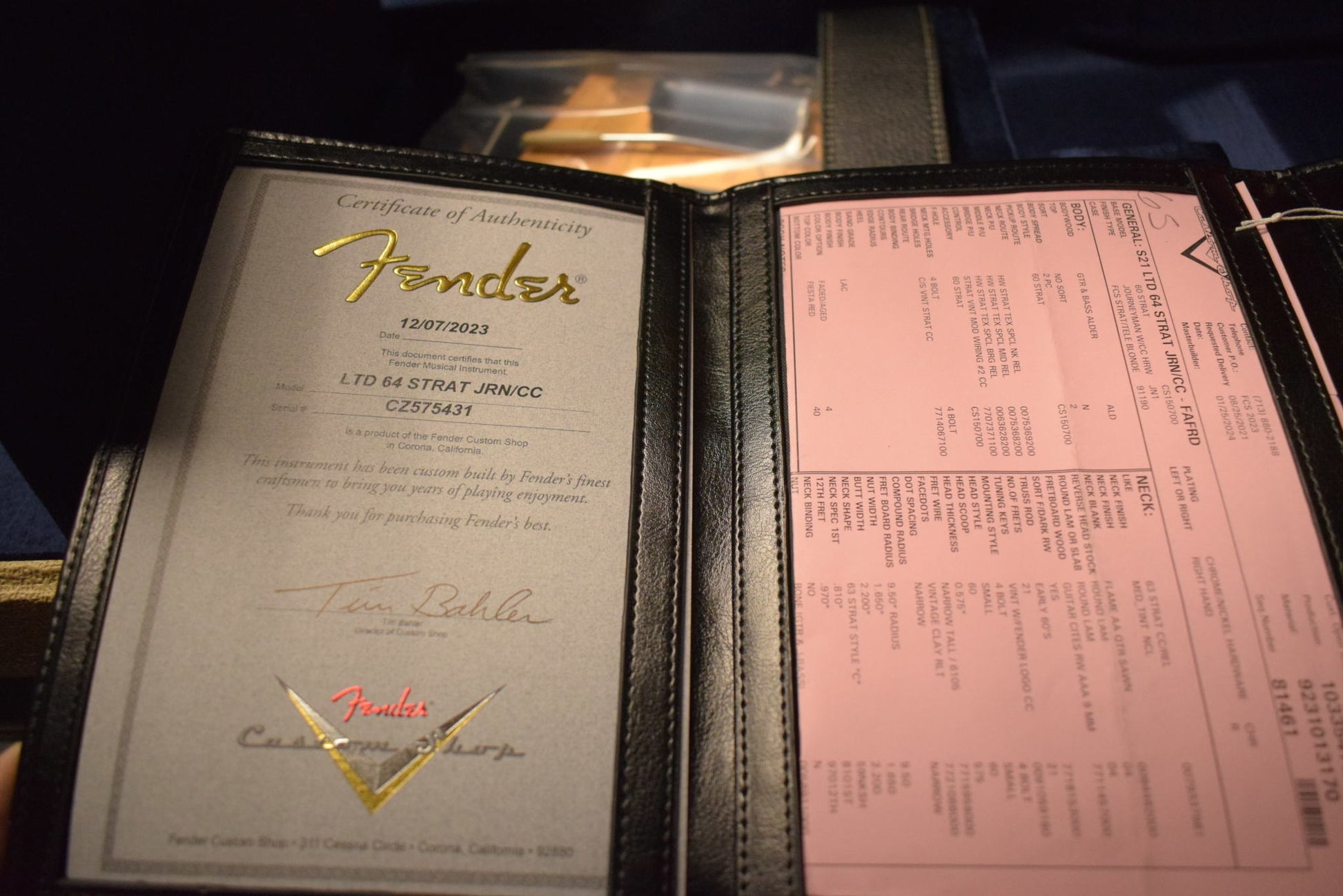 Journeyman Relic® Lacquer Finish with Closet Classic Hardware; 2-Piece Select Alder Body; 2A Flame Quartersawn Maple Neck with Round-Lam Rosewood Fingerboard; '63 Style "C" Back-Shape; 9.5" Radius; 21 Narrow Tall (6105) Frets; Hand-Wound Texas Special™ Strat® Pickups; Vintage Modified #2 Wiring with Tone-Saver Bleed; 5-Way Switch; 3-Ply Mint Green Pickguard; Custom Shop Vintage Synchronized Tremolo; Vintage-Style Tuning Machines; Bone Nut; Wing String Tree with Tall Metal Spacer; Deluxe Hardshell Case; Strap; Certificate of Authenticity.