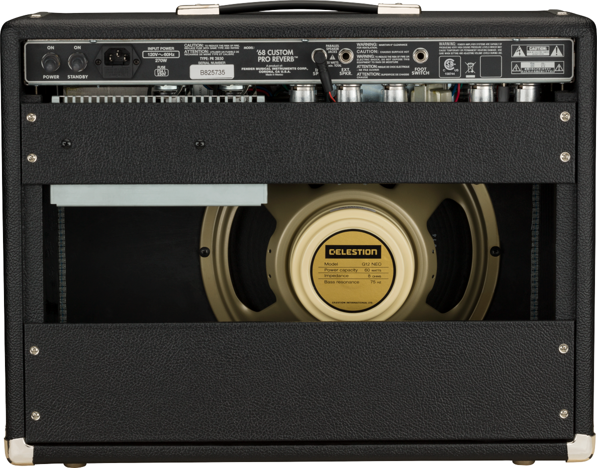 Unique Features: Modified Pro Reverb circuitry, Lightweight cabinet and Celestion® Neo creamback reduce amp weight to under 35 pounds, reduced negative feedback for more touch sensitivity, genuine Fender tube-driven reverb and grid-bias tremolo, 1968-style silver-panel aluminum trim and silver-turquoise grille cloth, comes with vintage-style two-button foot switch and fitted cover.