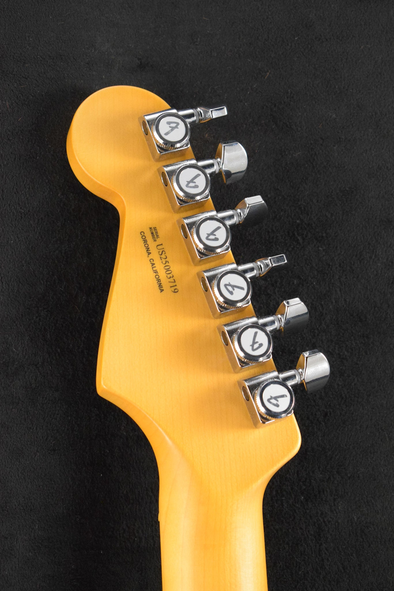 Under the hood, a pair of Ultra II Noiseless™ Hot Strat® pickups paired with a Haymaker™ Humbucker deliver everything from sweet crystalline cleans to searing leads, all without a hint of hum. Our patented S-1™ switch cleverly splits the Haymaker for even more tonal variety. Additional road-ready features include 2-Point American Ultra synchronized tremolo with pop-in arm, polished stainless steel block saddles, cold rolled steel block, deluxe locking tuners, soft-touch knobs and 1-ply anodized aluminum pickguard.
