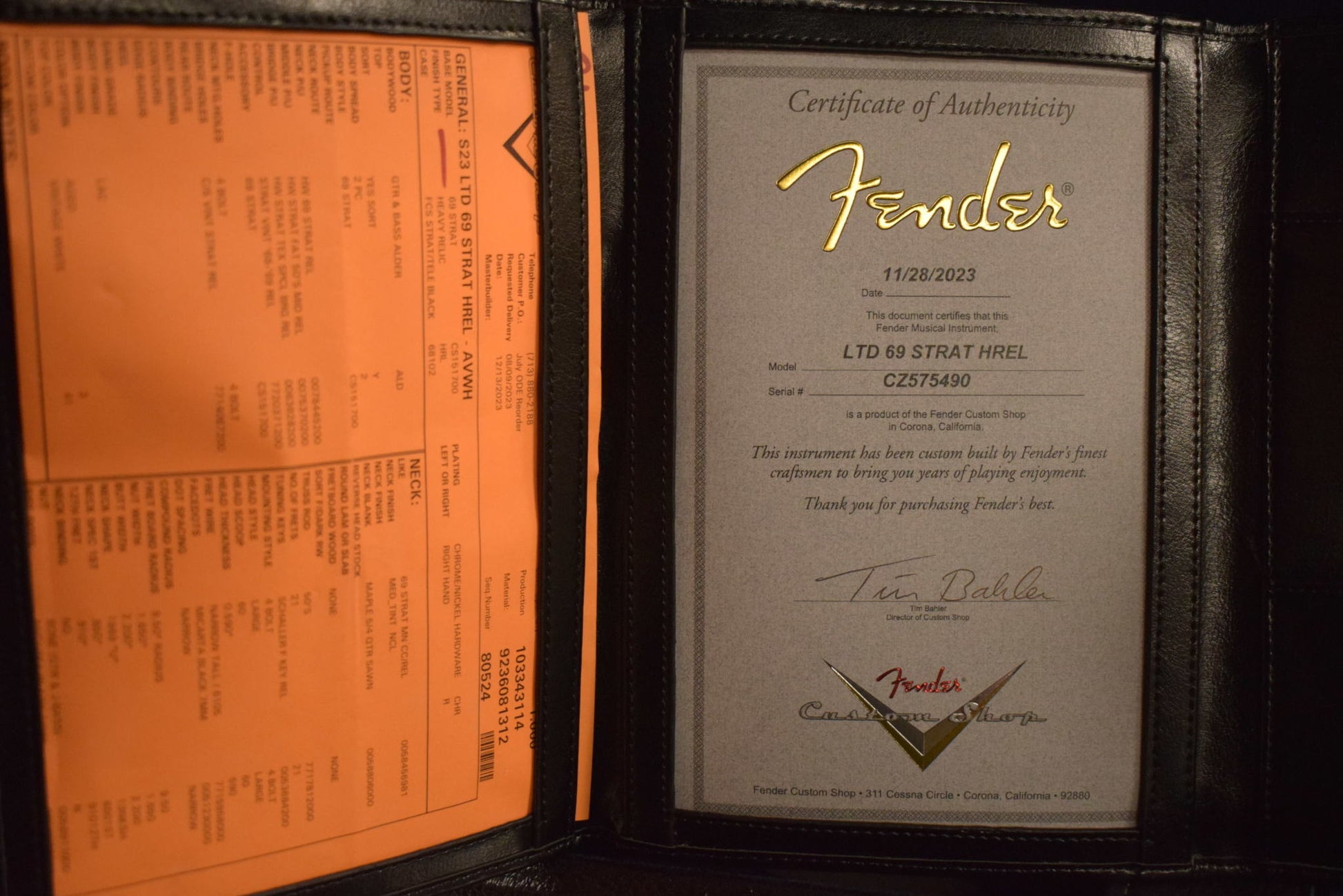 Heavy Relic® Lacquer Finish; 2-Piece Select Alder Body; 1-Piece Quartersawn Maple Neck with '69 Style "U" Back-Shape; 9.5" Radius; 21 Narrow Tall (6105) Frets; Custom Shop Hand-Wound Texas Special™ Strat (Bridge), RWRP Fat '50s Strat (Middle) and '69 Strat (Neck) Pickups; '68-'69 Vintage Strat Wiring; 5-Way Switch; 3-Ply Parchment Pickguard; Custom Shop Vintage Synchronized Tremolo; Vintage-Style "F" Tuning Machines; Bone Nut; Wing String Tree with Nylon Spacer; Deluxe Hardshell Case; Strap; Certificate of Authenticity.