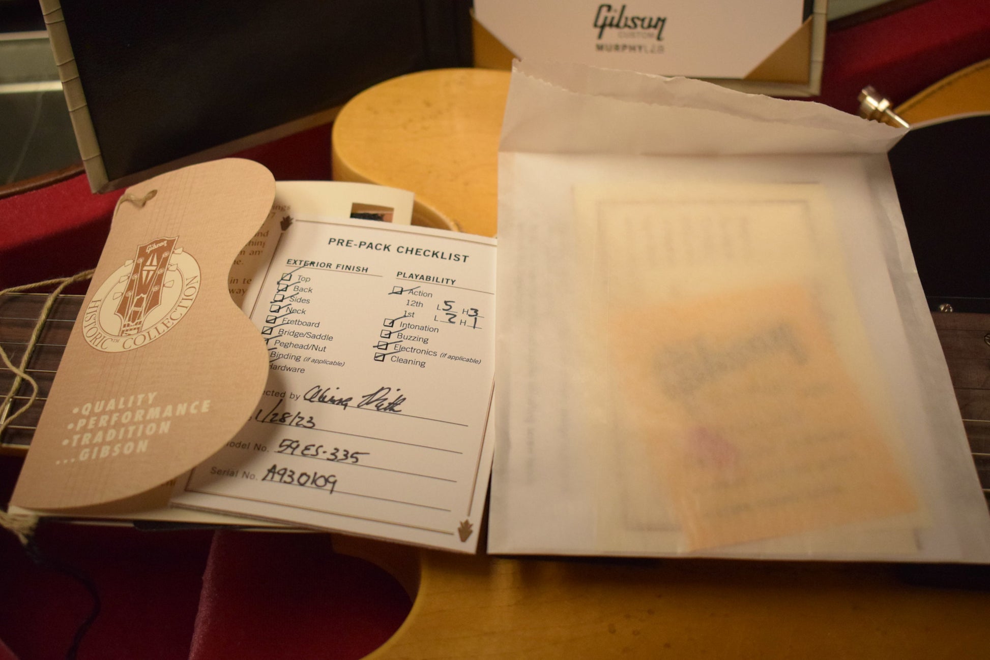 The Historic Reissue ES-335 is back and better than ever thanks to a year of studying, scanning, and listening to original examples. The expert craftspeople at the Gibson Custom Shop have rendered every contour, profile, inlay and color of the priceless vintage ES™ models in magnificent detail. The result is a playing and ownership experience that will keep you coming back for more. This 1959 Reissue model features rounded cutaways, a Medium C-shape neck profile scanned from originals, dot inlays, Kluson® tuners, and vintage-replica parts. It also features Ultra Heavy Aging by the skilled artisans of the Murphy Lab. The Murphy Lab Ultra Heavy Aged finish treatment, paired with heavily aged hardware, simulates decades of heavy play wear, giving it the unique character, vibe, and feel of an original example from the Gibson Golden Era.