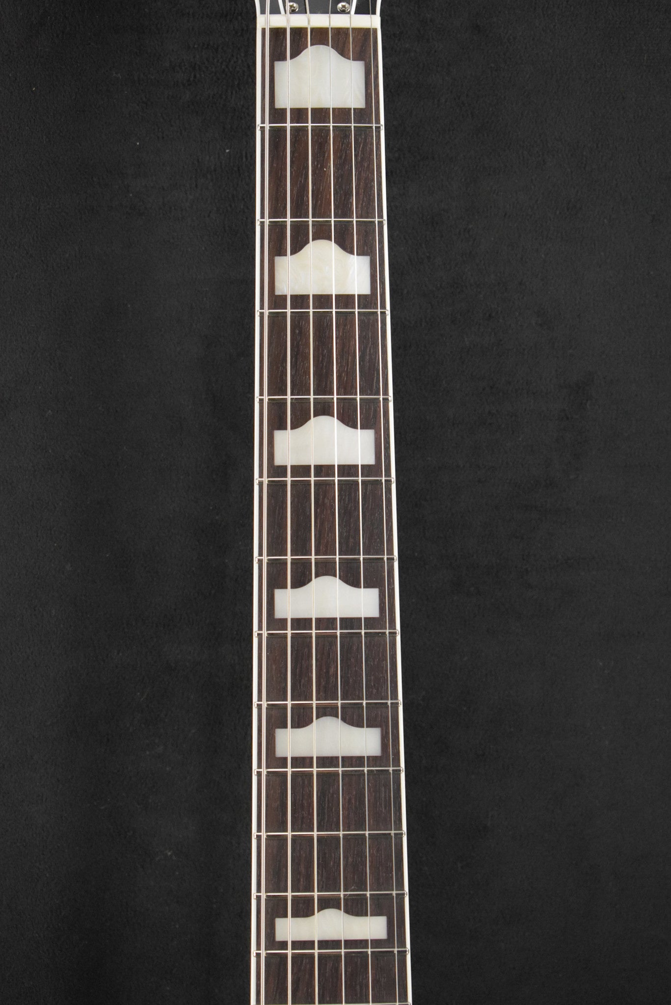 The GH6128T-GH offers the distinctive appointments and modifications found on Harrison's original 1957 Gretsch Duo Jet, which he purchased secondhand in the early 1960s. Features include a lightweight mid-'50s-style chambered body, Bigsby® B3C tailpiece with a black Phillips head tremolo arm pivot bolt, and an offset strap button on lower bout. Other features include three-ply body binding (white-black-white), single-ply white neck and headstock binding, 12"-radius 22-fret rosewood fingerboard with Hump Block pearloid inlays, two single-coil DynaSonic™ single-coil pickups, vintage-style "rocking bar" bridge with rosewood base, silver plexi pickguard, chrome-plated Grover® V98CM Sta-Tite™ tuners, Gretsch G-arrow control knobs, chrome-plated hardware, Harrison's signature on the truss rod cover and a premium tweed hardshell case.
