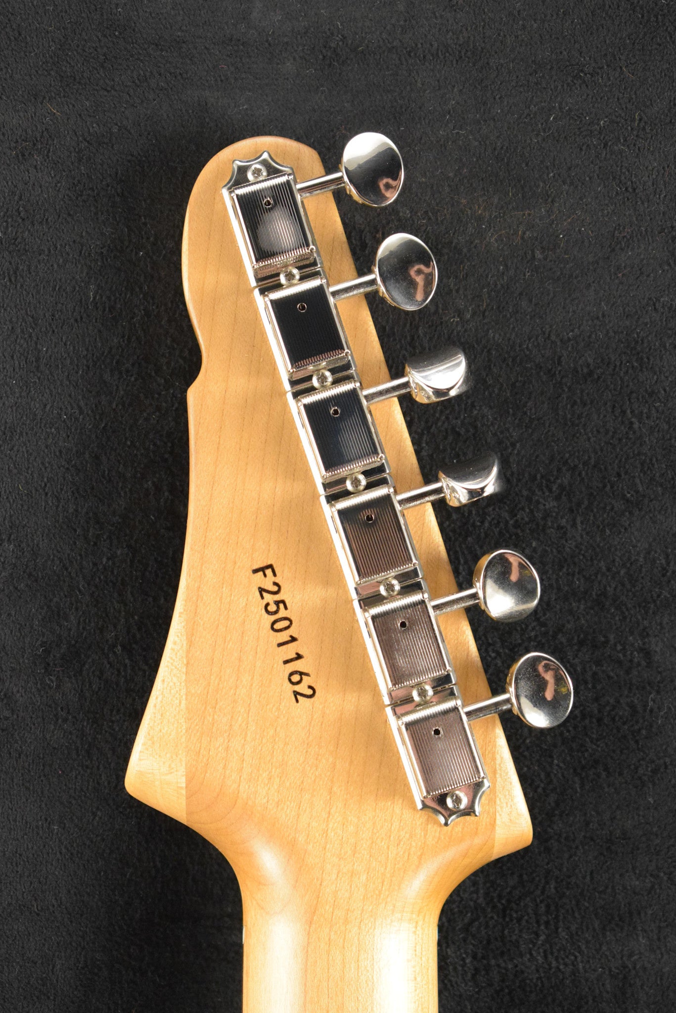 Every detail of the FullerTone Series sings with possibility and quality. Premium CTS pots and Orange Drop capacitors provide effortless control over your tone. The Aumsen brass-saddled bridge and Tremolo with Brass block offer the intonation and stability you need while the staggered custom designed tuners keep your creative vision perfectly in tune while creating the perfect string pull on every string.