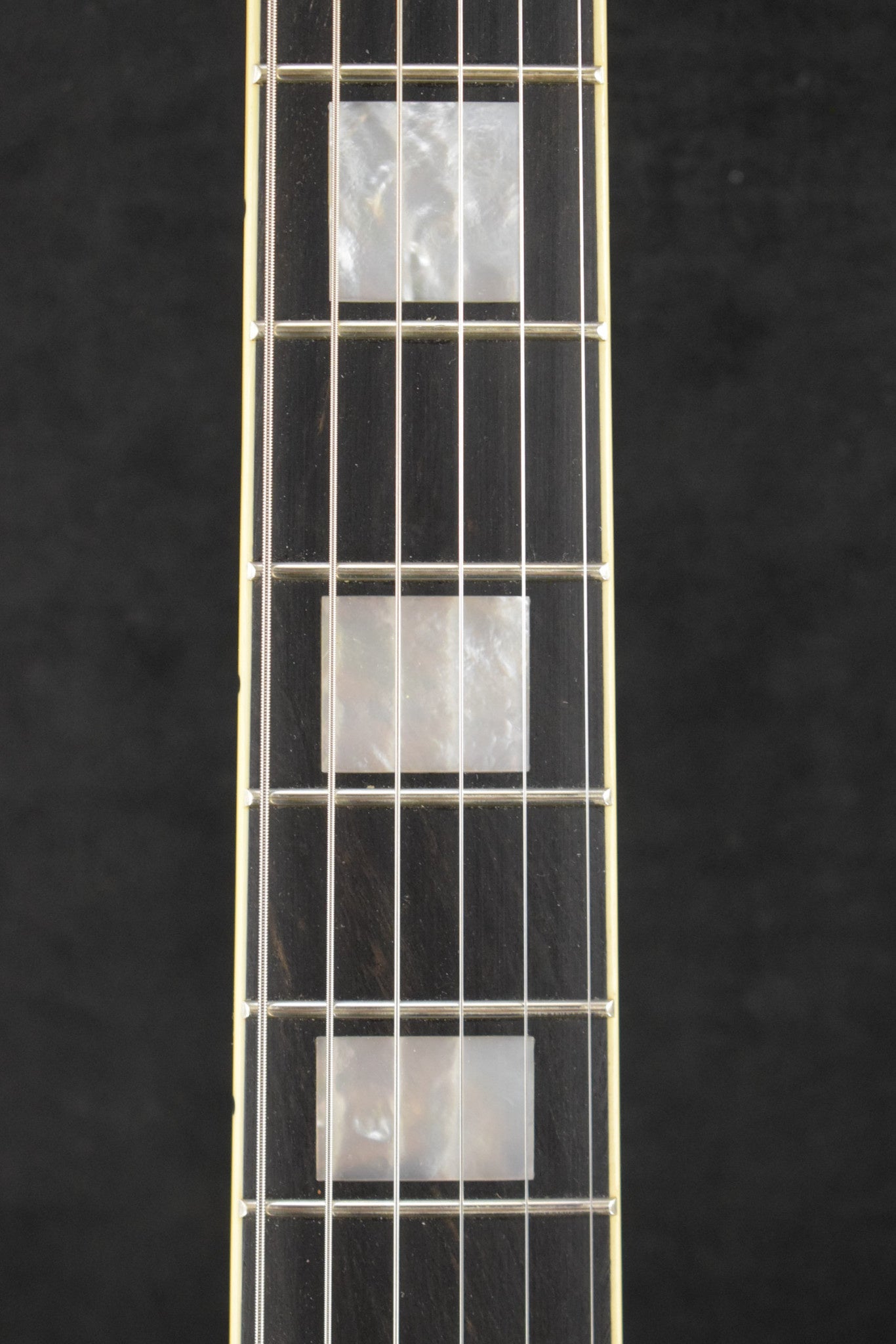 In partnership with Gibson™ Custom, Epiphone is proud to release the 1959 ES-355, a stunning recreation of the preeminent ES™ model from the legendary class of 1959. It’s the top-of-the-line ES model in all its glory, from the dimensions to the contours to the precise inlay patterns and sonic experience. The 1959 ES-355 features a 5-ply layered maple/poplar body with a solid maple centerblock for sustain and feedback resistance, a one-piece mahogany neck with a 50s Rounded Medium C profile, and an ebony fretboard that is adorned with block mother of pearl inlays. The Gibson-style “open book” headstock features the Split Diamond and Epiphone logo inlays in mother-of-pearl, along with gold Grover® Rotomatic® tuners and the Inspired by Gibson double diamond logo etched on the back. The 1959 ES-355 is powered by a pair of Gibson Custombuckers that are hand-wired to CTS® potentiometers, Mallory™ capacitors, and a Switchcraft® pickup selector switch and output jack. A brown and pink hardshell case with the Inspired by Gibson Custom logo is also included.