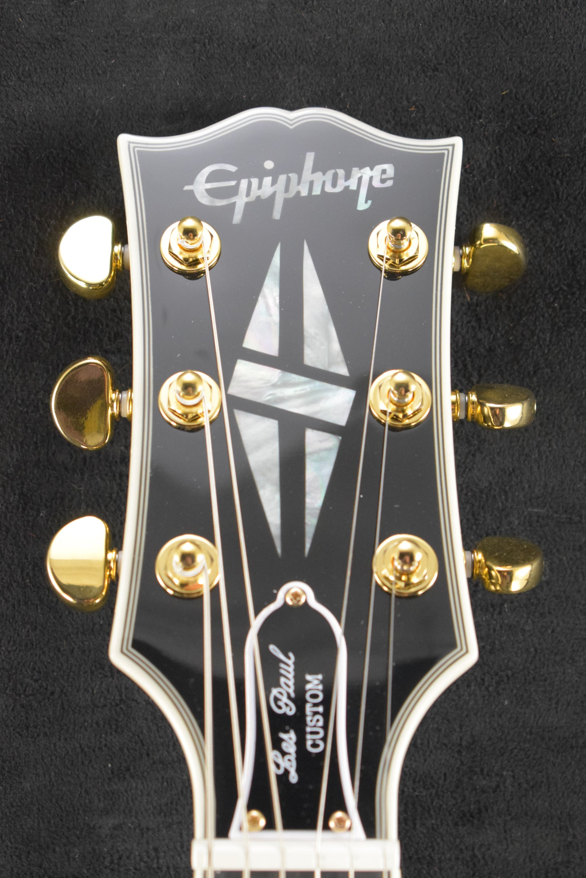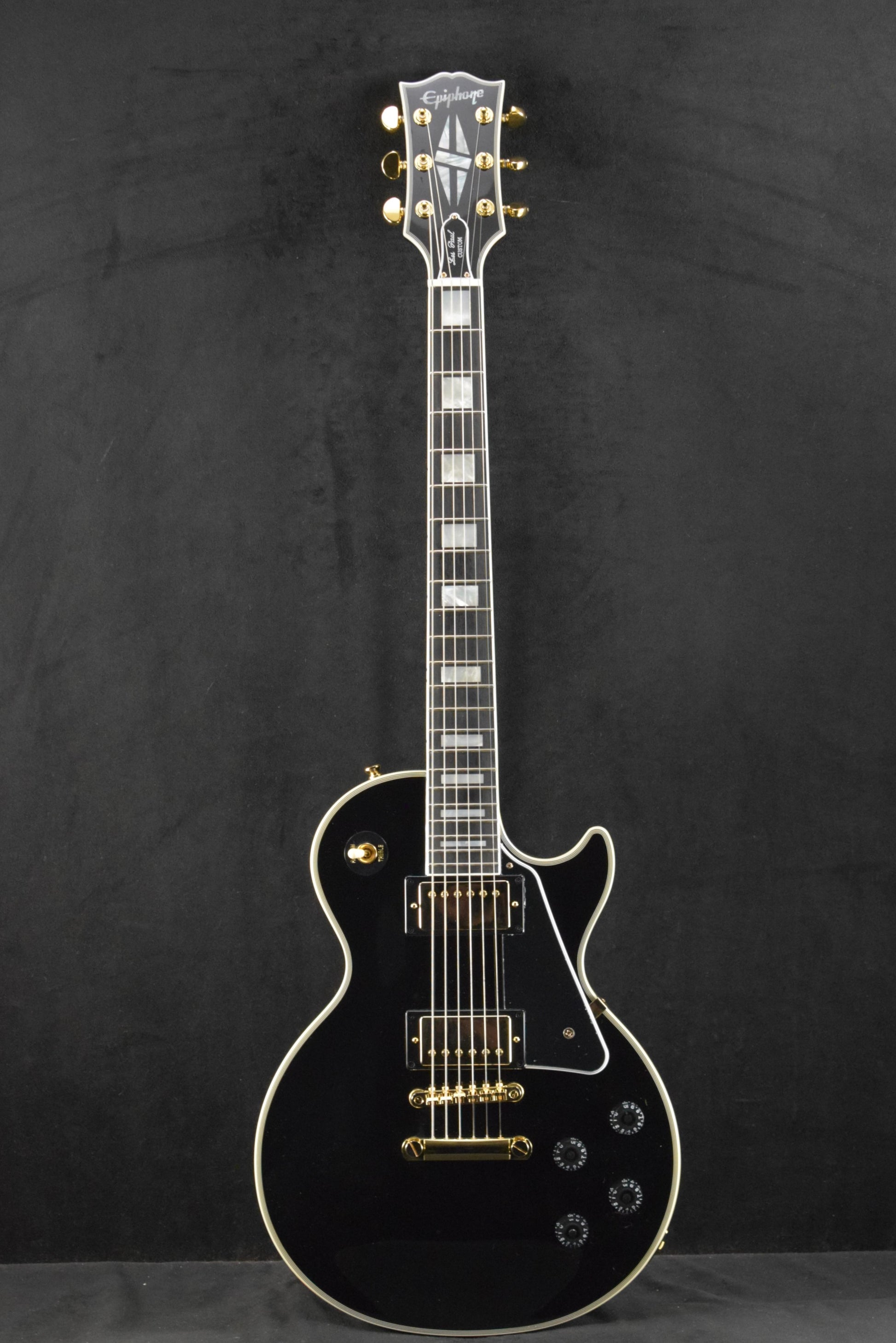 As part of the ongoing collaboration with Gibson™ Custom, Epiphone is proud to introduce the flagship Les Paul™ Custom to the Inspired by Gibson Custom lineup. Replete with all of the classy “tuxedo” appointments that the model is known for, this beautiful guitar has a one-piece mahogany neck with a Modern Medium C profile, an ebony fretboard, and mother-of-pearl block fretboard inlays. There are also mother-of-pearl split diamond and Epiphone logo headstock inlays on the Gibson-style “open book” headstock. Gold hardware, including Grover® Rotomatic® 18:1 gear ratio tuners, gives it even more visual appeal. The solid mahogany body has a maple cap for a touch of added sonic bite, while the Gibson USA 490R and 498T pickups provide tonal sophistication and plenty of muscle to back up all the beauty. They’re hand-wired to CTS® potentiometers, a Switchcraft® output jack and pickup select switch, and Mallory™ capacitors. An Inspired by Gibson Custom double diamond logo is on the back of the headstock, and a black hardshell case with the Inspired by Gibson Custom logo and a goldenrod interior is also included.