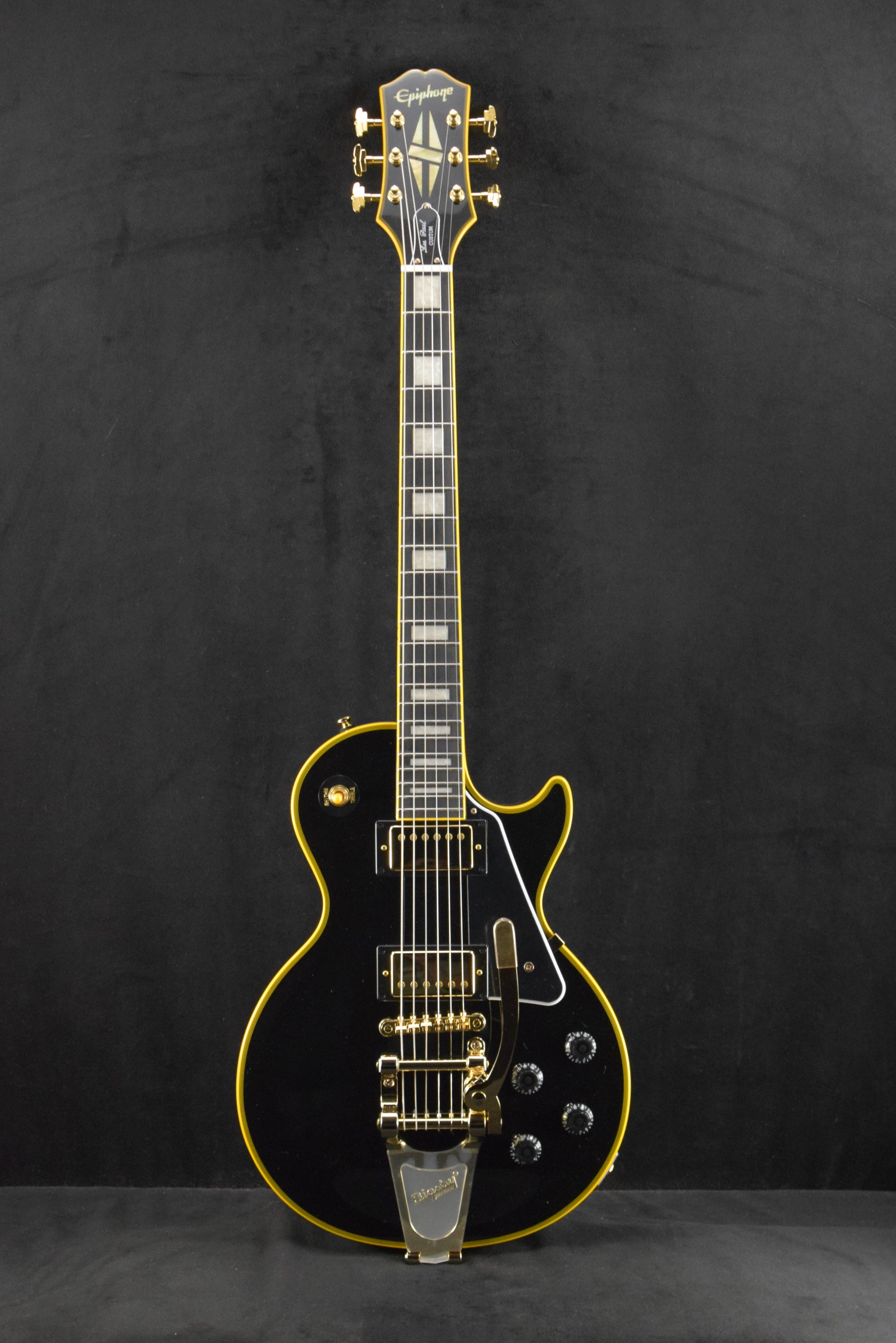 The Joe Bonamassa ’59 Les Paul Custom is powered by a pair of punchy-sounding Epiphone ProBucker™ Custom pickups that are wired to individual volume and tone controls that use high-quality CTS® potentiometers for outstanding reliability and tonal versatility. As is fitting for a Les Paul Custom, the hardware is gold, including a LockTone™ Tune-O-Matic™ bridge, the Grover tuners, and the Bigsby B70 vibrato tailpiece. The combination of these elements creates an instrument that is not only visually stunning but also remarkably versatile in its sound. The Epiphone Joe Bonamassa ’59 Les Paul Custom comes with a certificate of authenticity and a hardshell case with “Nerdville” graphics. This limited edition Epiphone Joe Bonamassa ’59 Les Paul Custom is a tribute to a legendary guitarist and an iconic guitar and represents both a lasting investment and excellence in musical instrument craftsmanship.