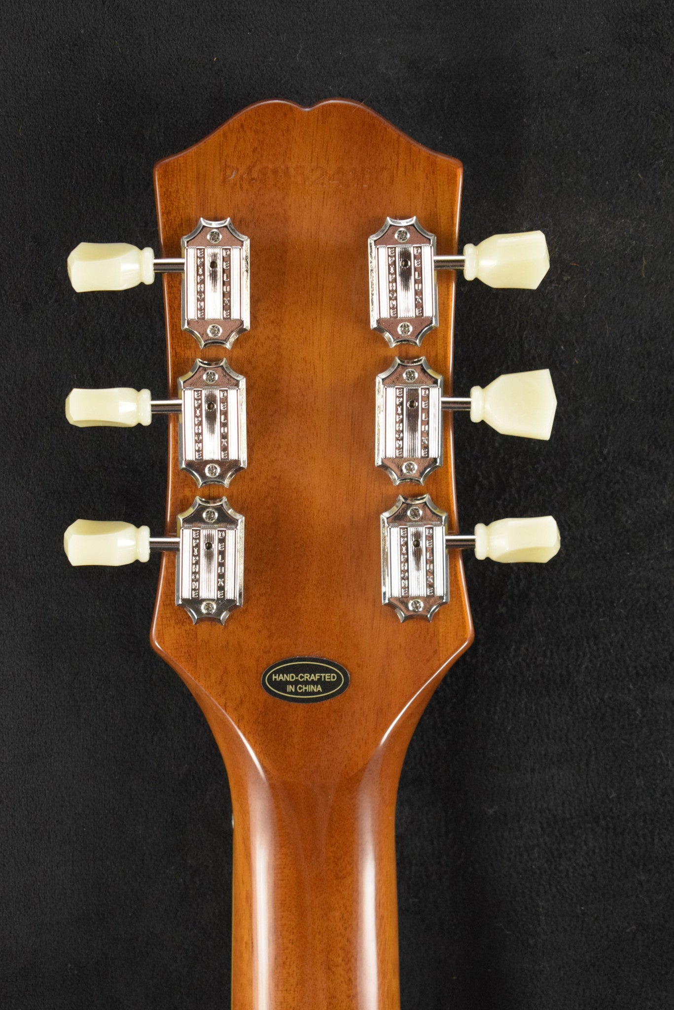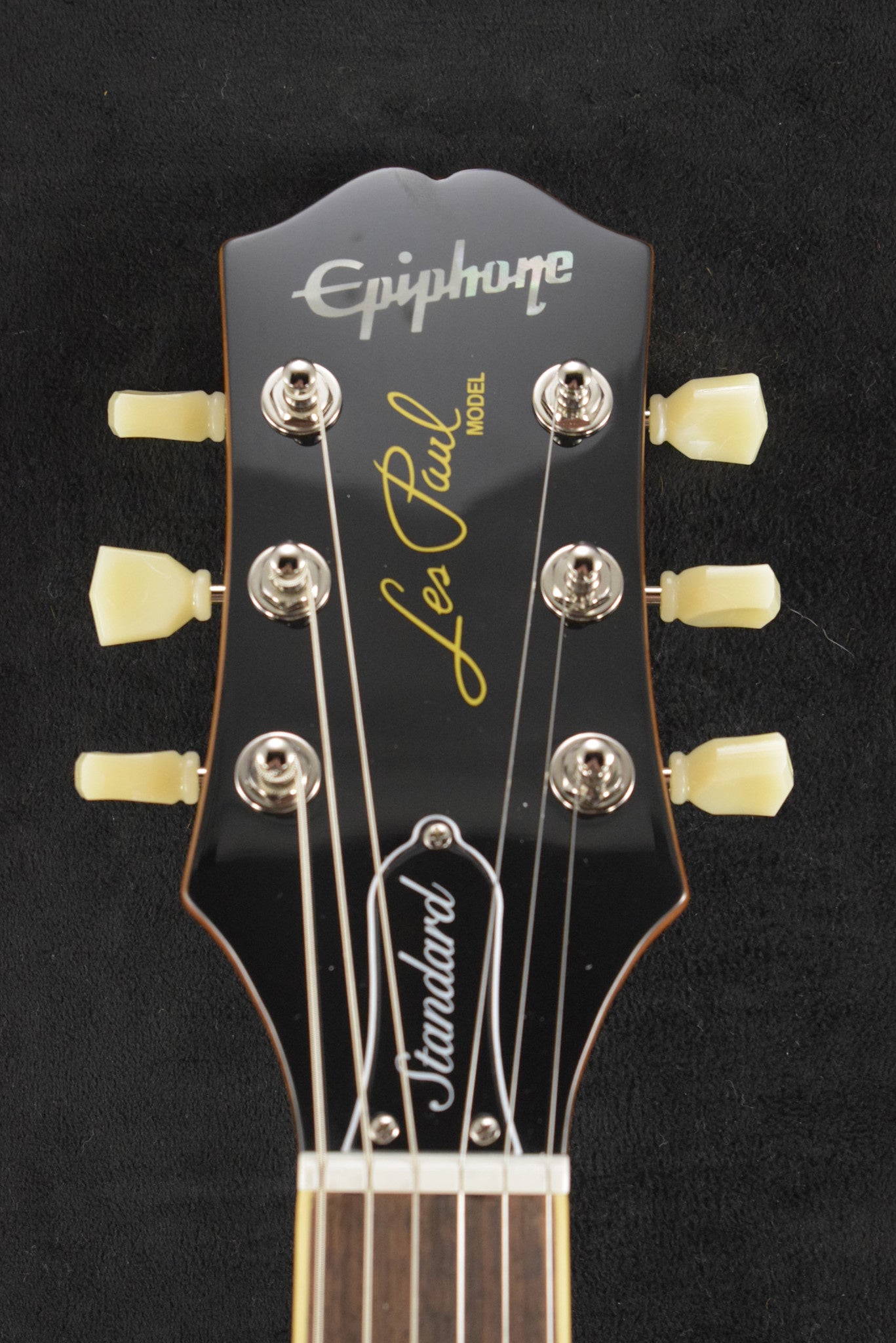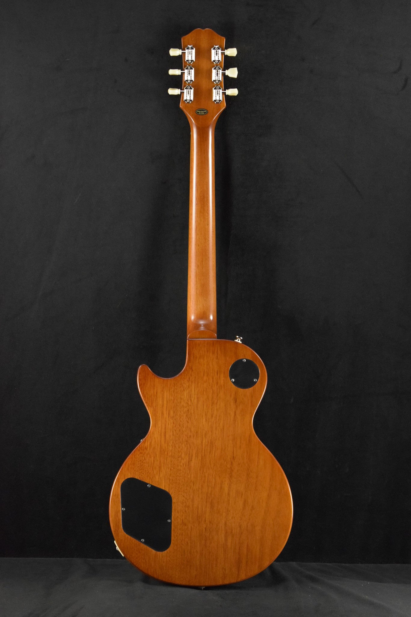 Epiphone’s Inspired by Gibson™ Collection proudly presents the Les Paul™ Standard 50s! This guitar lovingly recreates the feel and tone of the 1950s-era Les Pauls. Epiphone’s long friendship with Mr. Les Paul began in 1940 when Les built one of the world’s first solidbody electric guitars while working nights at the original Epiphone factory in Manhattan. Les’ first solidbody guitar, nicknamed “the Log,” would go on to inspire the Les Paul Standard, which many consider the greatest electric guitar ever made. This guitar is crafted with a mahogany body with a maple cap, a bound ’59 Rounded Medium C-shaped mahogany neck with long neck tenon, laurel fretboard with classic trapezoid inlays and 22 medium jumbo frets, Epiphone’s Vintage Deluxe tuners, a pair of critically acclaimed Epiphone Probucker™ humbuckers™, and gold Top Hat knobs with dial pointers. This Epiphone Inspired by Gibson Original model also has the Kalamazoo headstock, Graph Tech® nut, era-appropriate wiring, and CTS® pots. A premium gig bag is also included.