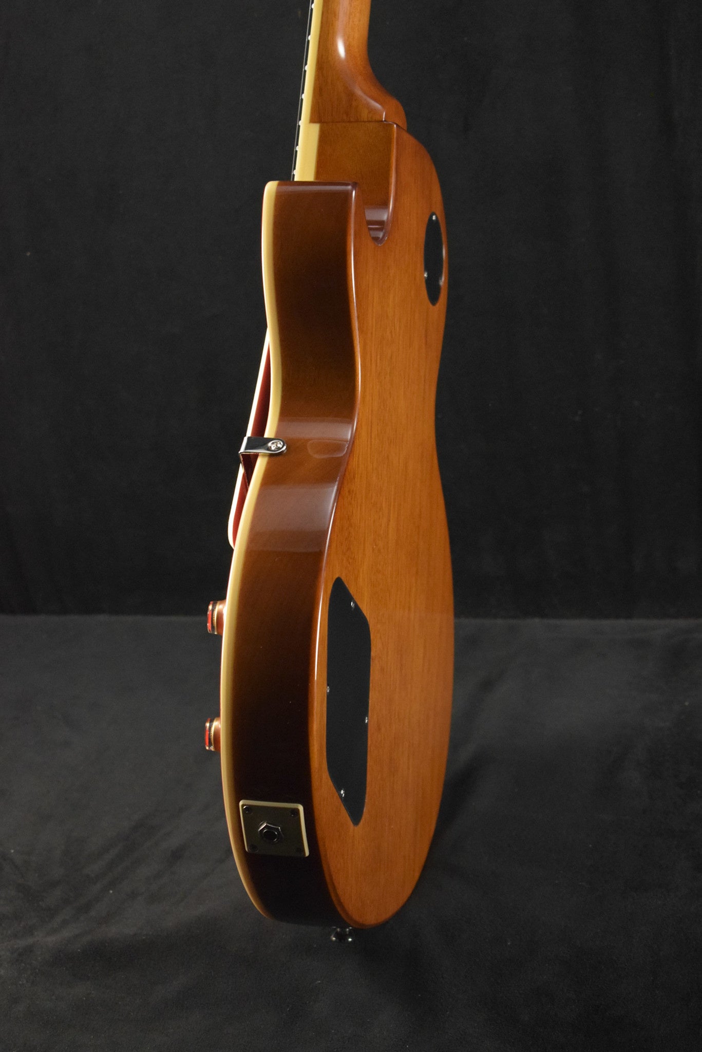 Mahogany body with a maple cap, mahogany neck with 1959 Rounded Medium C profile and long tenon, laurel fretboard, Probucker 1 and Probucker 2 pickups, CTS pots, 50s-style wiring, and a premium gig bag