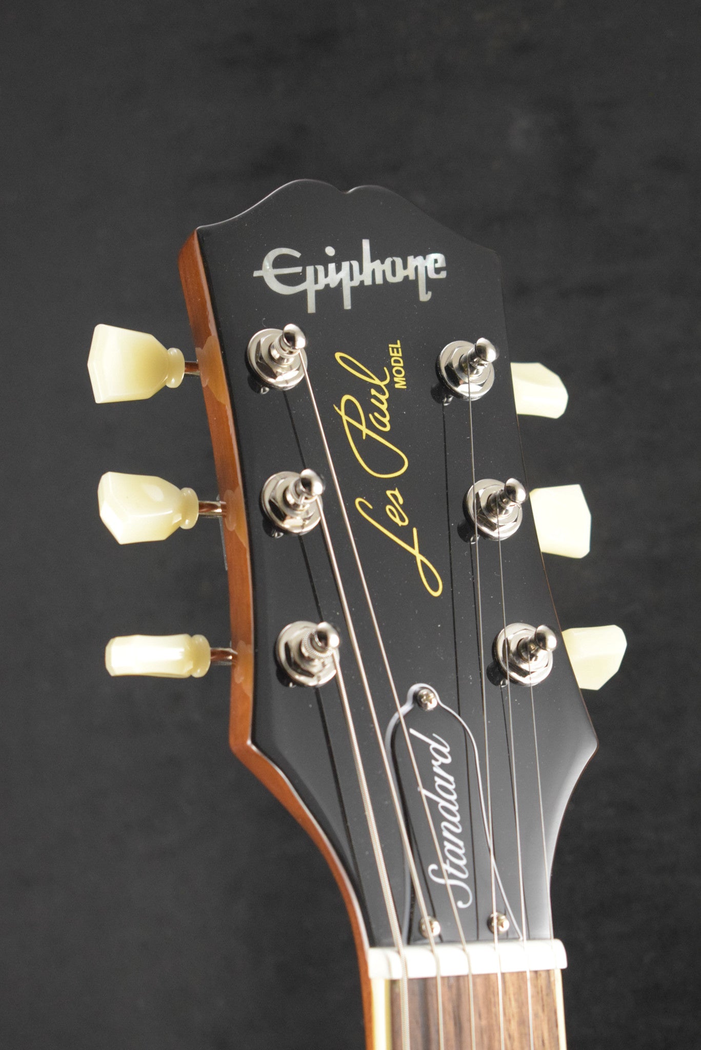 Epiphone’s Inspired by Gibson™ Collection proudly presents the Les Paul™ Standard 50s! This guitar lovingly recreates the feel and tone of the 1950s-era Les Pauls. Epiphone’s long friendship with Mr. Les Paul began in 1940 when Les built one of the world’s first solidbody electric guitars while working nights at the original Epiphone factory in Manhattan. Les’ first solidbody guitar, nicknamed “the Log,” would go on to inspire the Les Paul Standard, which many consider the greatest electric guitar ever made. This guitar is crafted with a mahogany body with a maple cap, a bound ’59 Rounded Medium C-shaped mahogany neck with long neck tenon, laurel fretboard with classic trapezoid inlays and 22 medium jumbo frets, Epiphone’s Vintage Deluxe tuners, a pair of critically acclaimed Epiphone Probucker™ humbuckers™, and gold Top Hat knobs with dial pointers. This Epiphone Inspired by Gibson Original model also has the Kalamazoo headstock, Graph Tech® nut, era-appropriate wiring, and CTS® pots. A premium gig bag is also included.