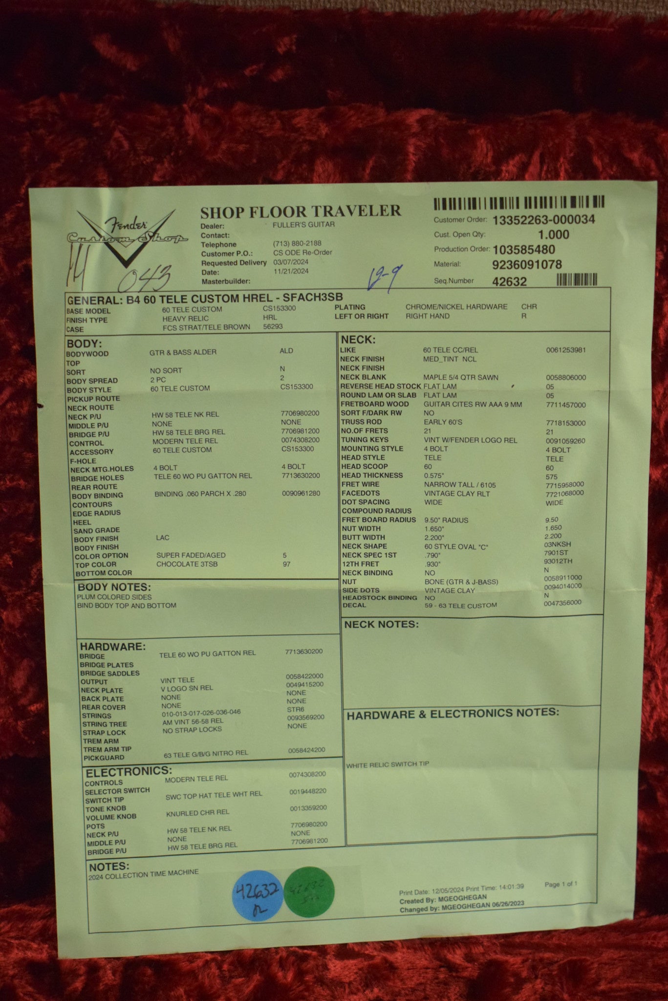 Model Name: 1960 Telecaster® Custom Heavy Relic®, 3A Rosewood Fingerboard, Super Faded Aged Chocolate 3-Color Sunburst