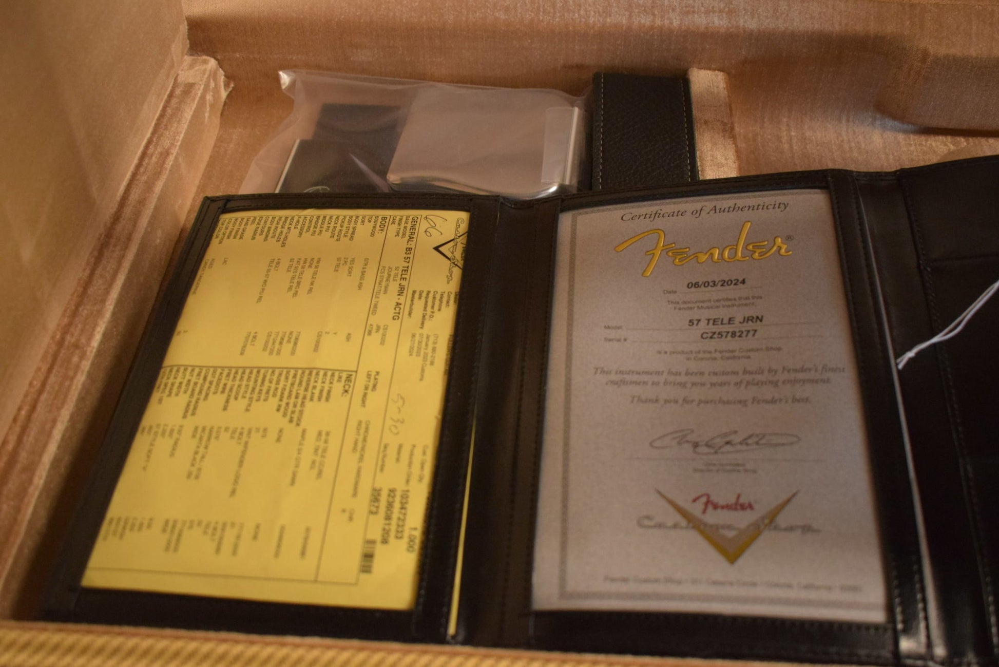'Journeyman Relic® Lacquer Finish; 2-Piece Select Ash Body; 1-Piece Quartersawn Maple Neck with 1950 Style "Blackguard" Back-Shape; 7.25" to 9.5" Vintage Compound Radius; 21 Medium Vintage (47095) Frets; Custom Shop Hand-Wound '50-'51 Blackguard Pickups; '51 Modified Nocaster® Wiring with Bridge/Neck Blend; 3-Way Switch; Single-Ply Black Phenolic Pickguard; '55-'57 Tele® Bridge with Steel Barrel Saddles; Vintage-Style Tuning Machines; Bone Nut; Wing String Tree; Deluxe Hardshell Case; Strap; Certificate of Authenticity.