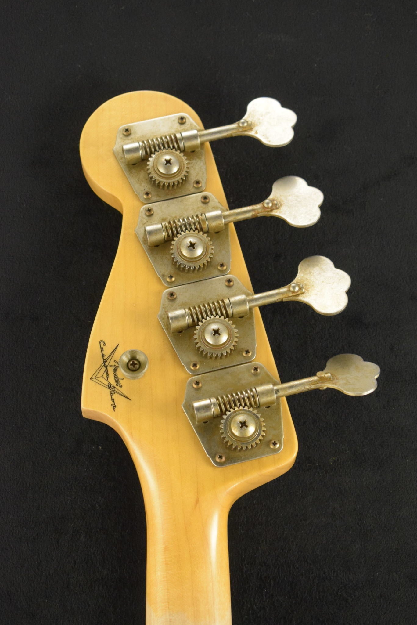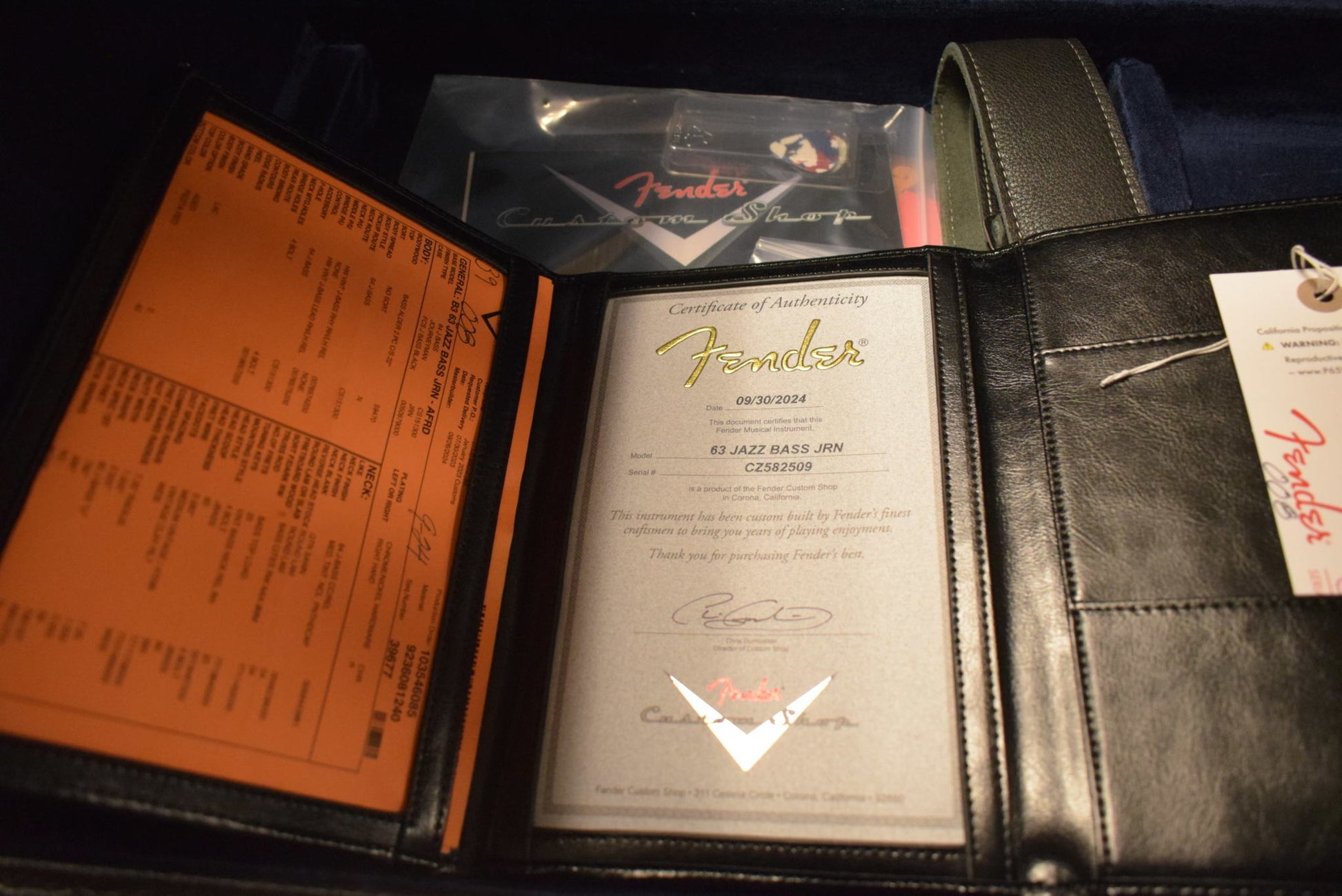 Journeyman Relic® Lacquer Finish; 2-Piece Select Alder Body; Quartersawn Maple Neck with Round-Lam Rosewood Fingerboard; '60s-Style Jazz Bass "U" Back-Shape; 7.25" Radius; 20 Medium Vintage (47095) Frets; Custom Shop Hand-Wound Vintage Jazz Bass Pickups; Vintage Vol/Vol/Tone Wiring; 3-Ply Mint Green Pickguard; 4-Saddle Vintage-Style Bridge; Vintage-Style Tuning Machines; Bone Nut; Disc String Tree; Deluxe Hardshell Case; Strap; Certificate of Authenticity.