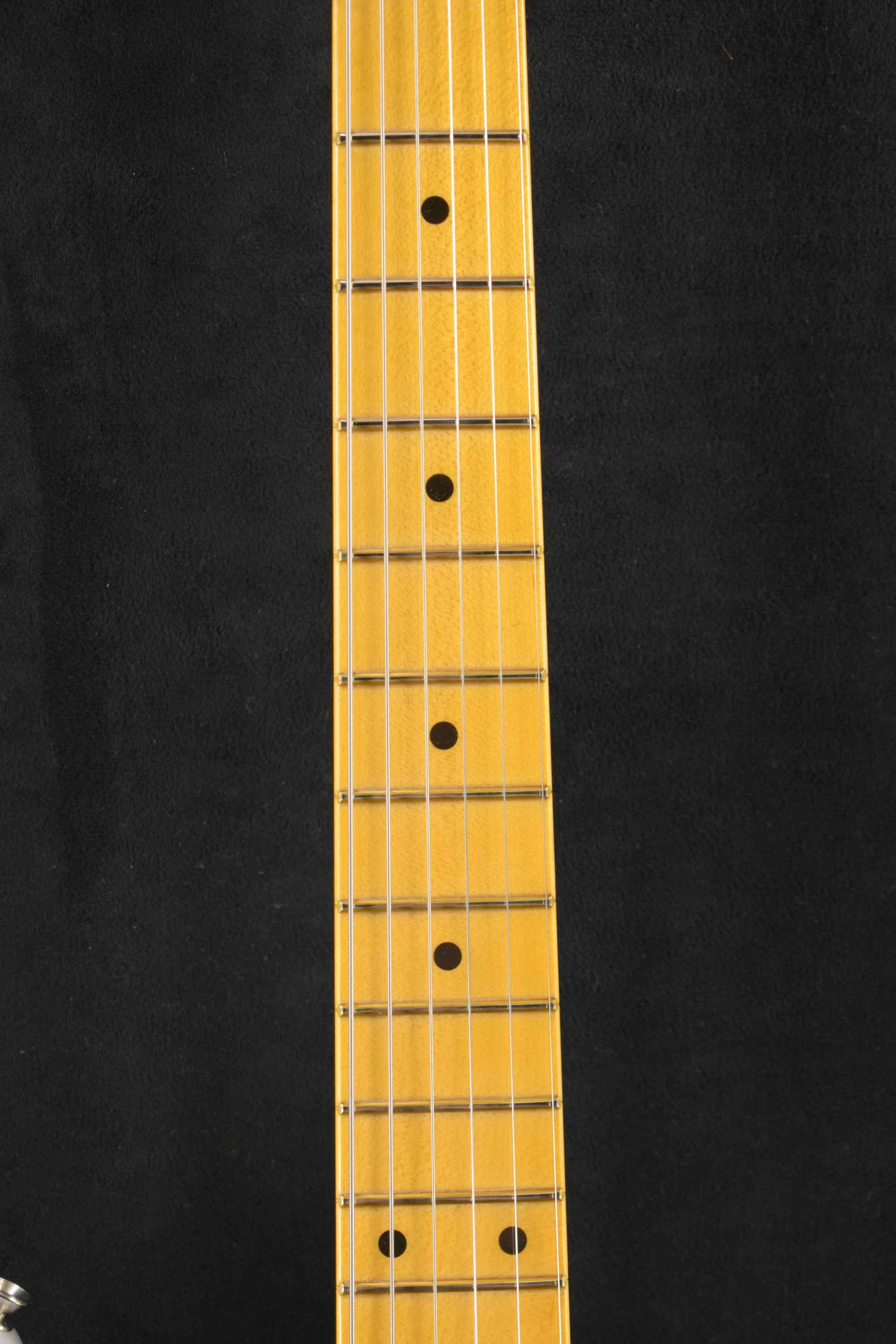 One-piece vintage-tint quartersawn maple neck (contours sanded very smooth) with '57-style "soft V" contour