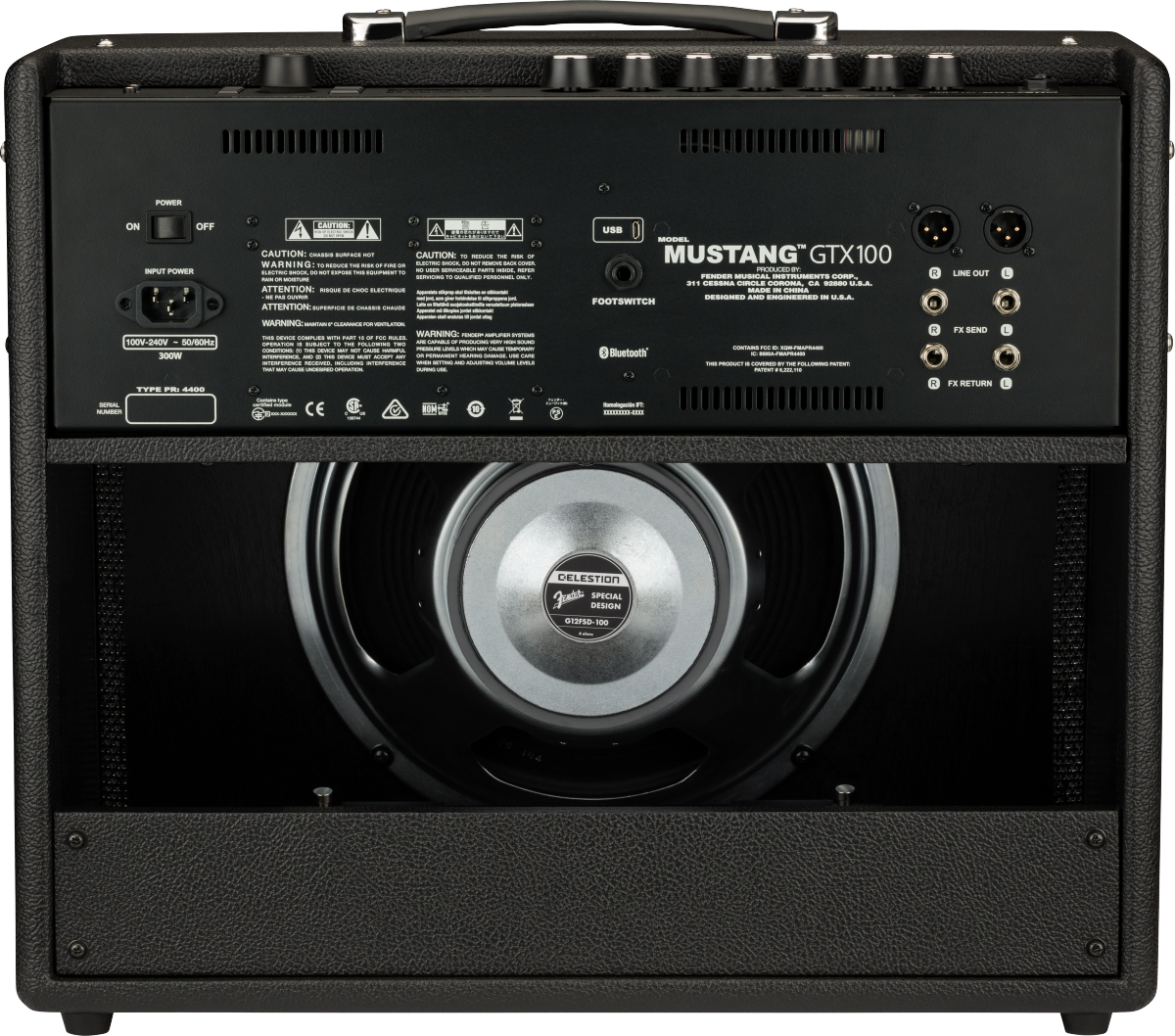 Mustang GTX 100 offers incredible bang for the buck. The all-new cabinet design is more gig-ready and durable; a new 12-inch Celestion speaker produces strong, powerful response; and the improved amp, speaker and cabinet models ensure that Mustang GTX sounds better than anything else in its class. Stereo XLR line outputs and stereo effects loop let you interface with PA, recording and outboard gear. GTX100 also includes a seven-button footswitch with individual bank up and down functions and easy effects selection, making GTX a true live performance amp. It also unlocks the amp's included 60-second looper.