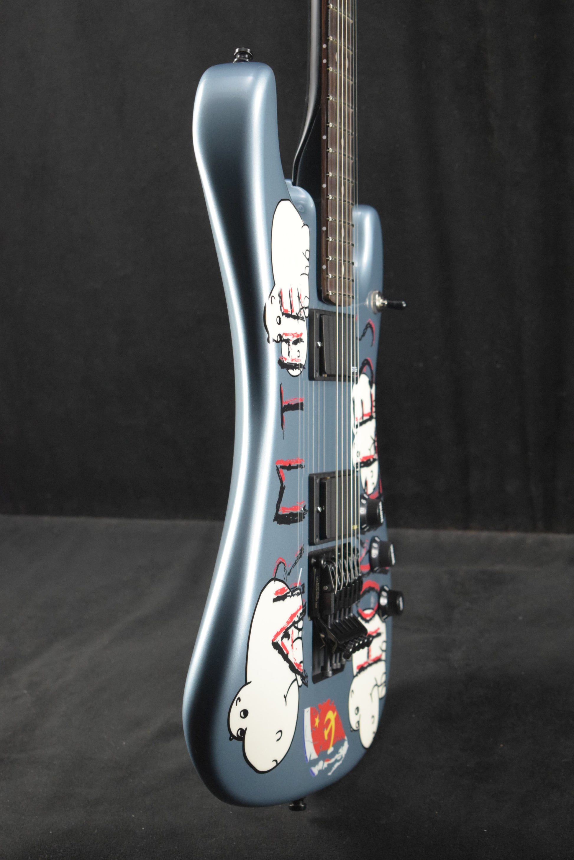As architect of Rage Against the Machine's groundbreaking sound, Rock 'n' Roll Hall of Famer Tom Morello revolutionized guitar with his monstrous riffs and boundary-breaking techniques. His heavily modified 'Arm the Homeless' guitar became legendary and has been his primary instrument for over 35 years, channeling everything from delicate jazz phrases to searing metal riffs through its distinctive active electronics and Gotoh® double-locking tremolo system. Adorned with its provocative slogan and his own hand-drawn hippopotamus design against its striking blue ice metallic finish, this guitar masters its role as an instrument to become a powerful symbol of artistic rebellion. Every component, including its characteristic hockey stick headstock and powerful visual messaging captures Morello's unwavering commitment to musical innovation and social change.