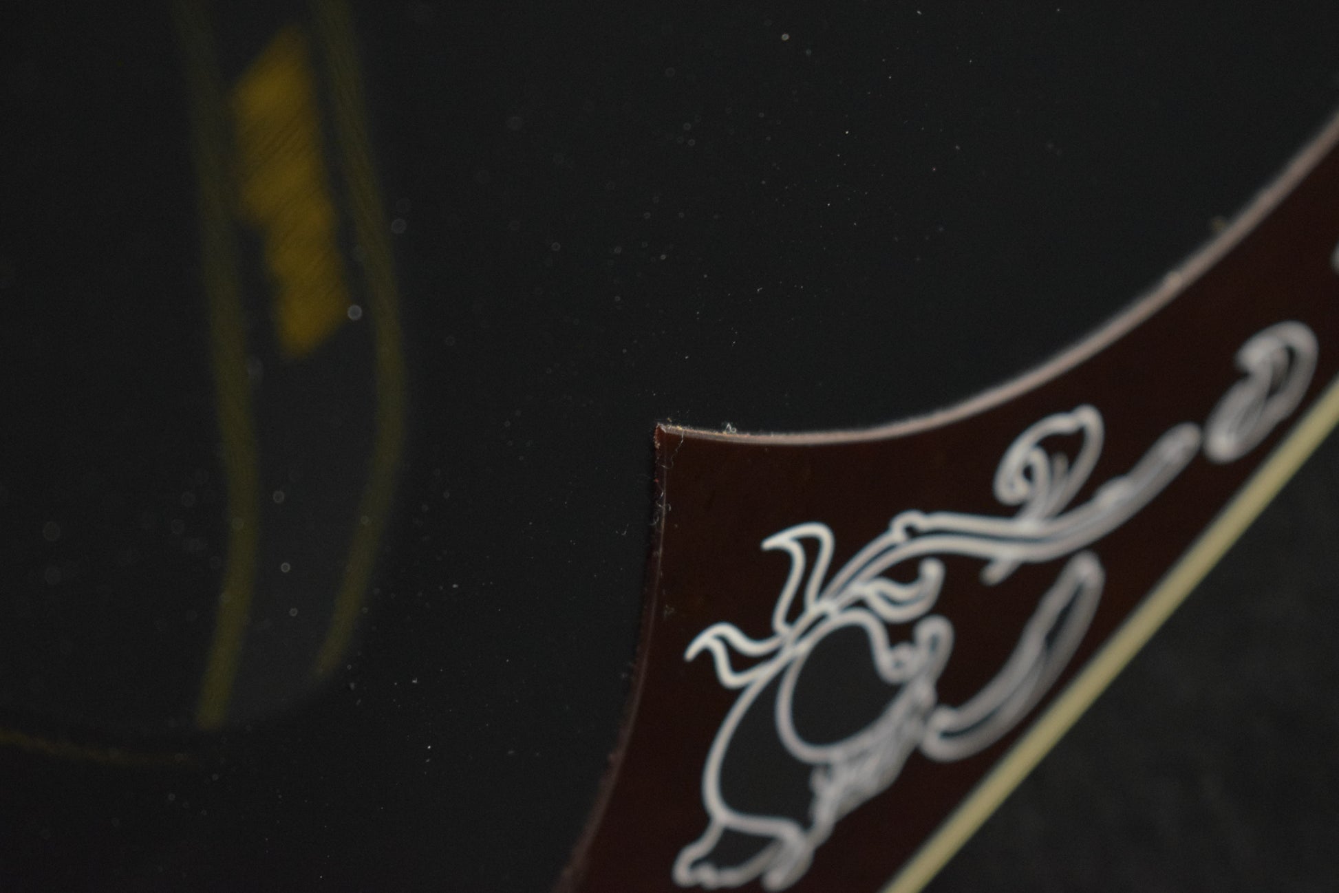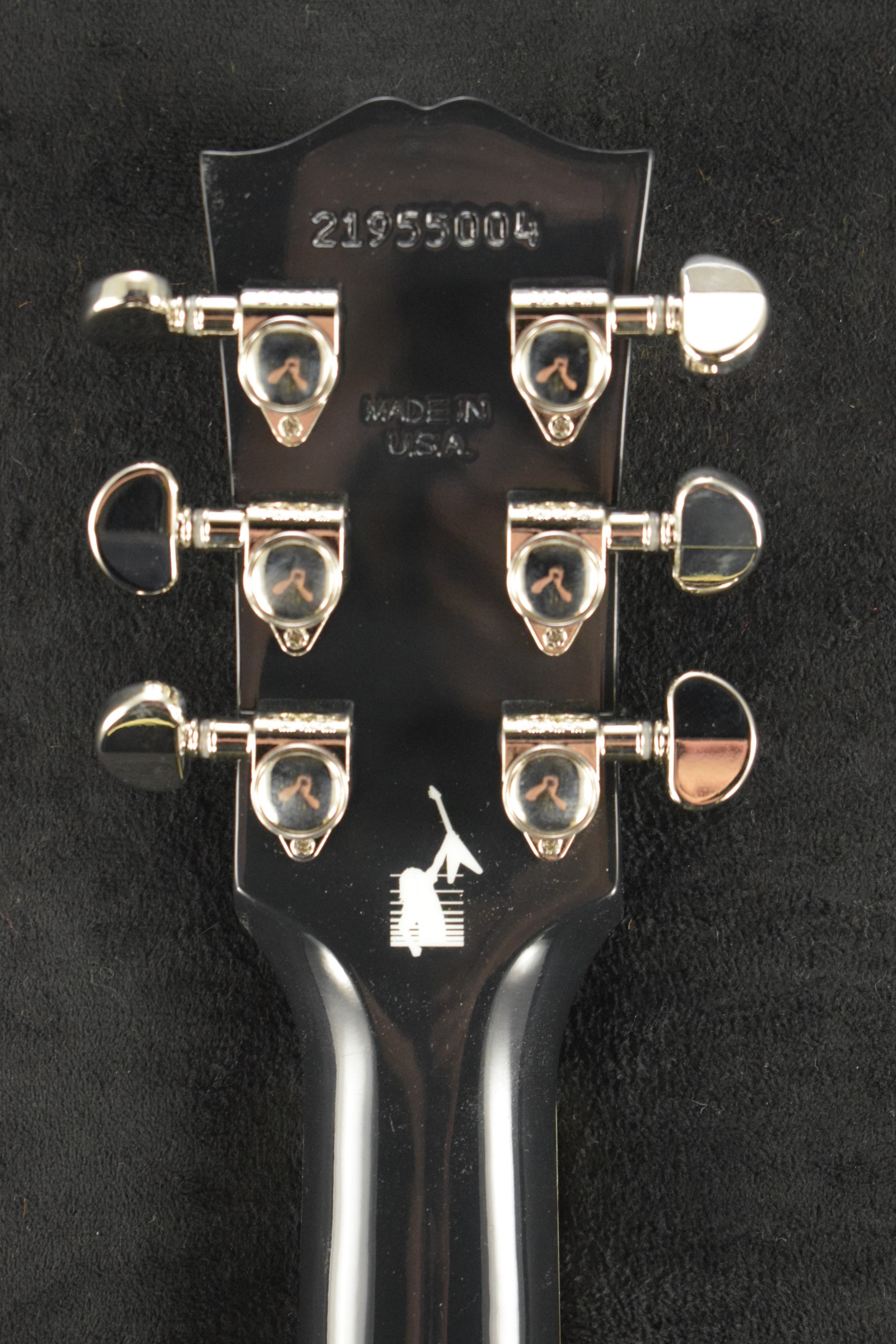 Mother-of-pearl Gibson logo and raven skull headstock inlays