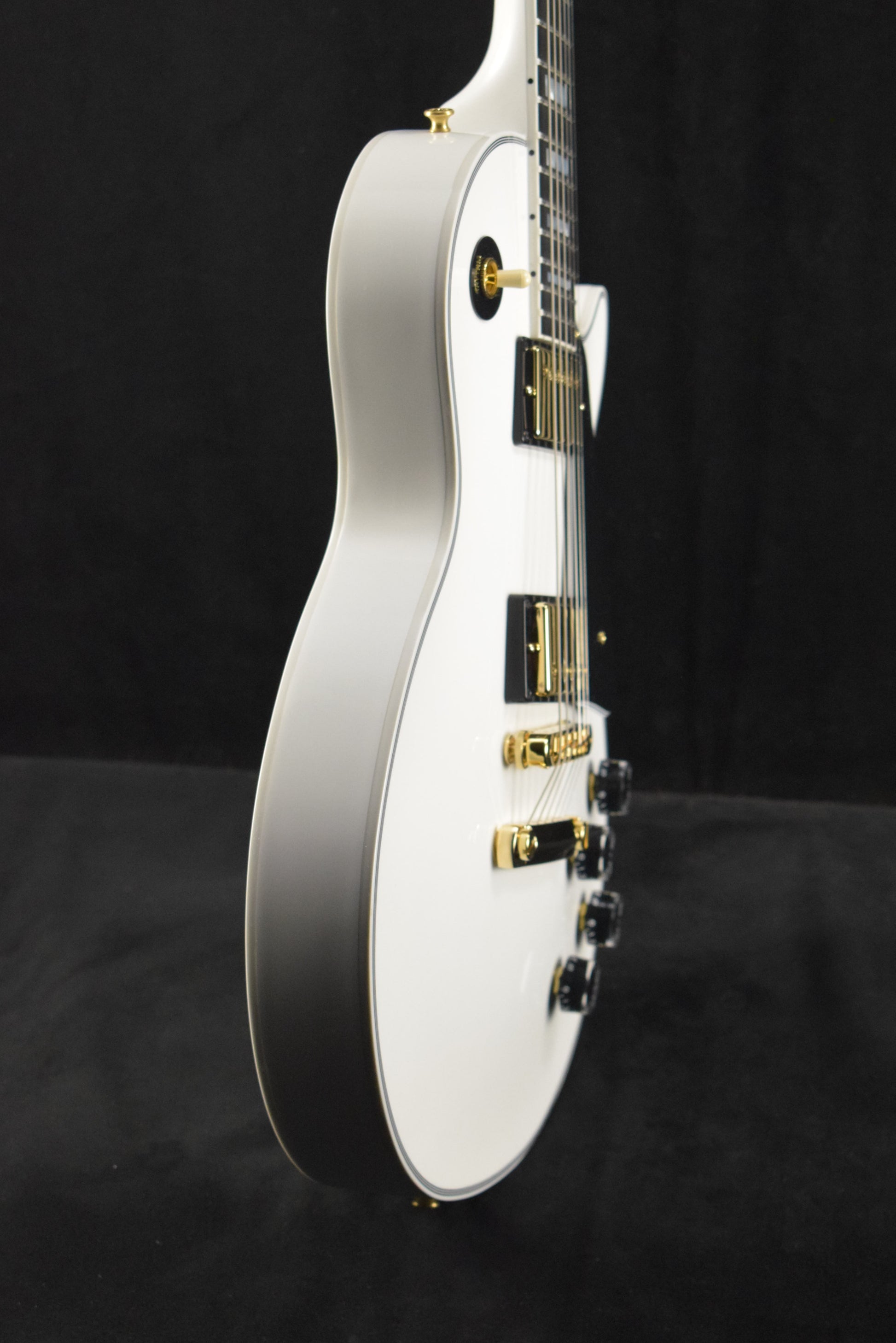 As the flagship model from Gibson Custom, the Les Paul Custom lives up to the high standards set by its 1950s archetype while evolving to a level of tone and performance more suited to today's musical demands. Beneath the layers of its "tuxedo" appointments lies the crisp, edgy voice of a matched 490/498 humbucker set, a solid Ebony fingerboard, a long neck tenon for maximum sustain and a two-piece maple top over a solid mahogany body which adds the perfect amount of sonic bite to everything from jazz to hard rock. It sounds as good as it looks, and it looks as good as it sounds!