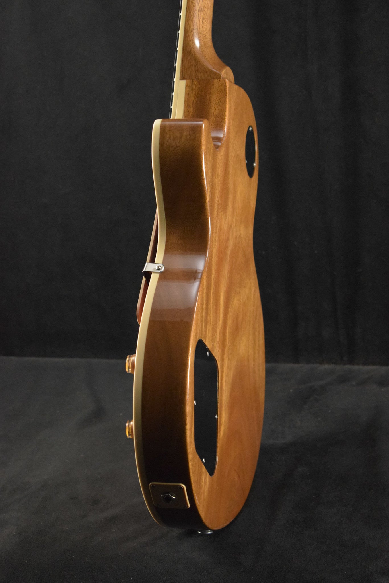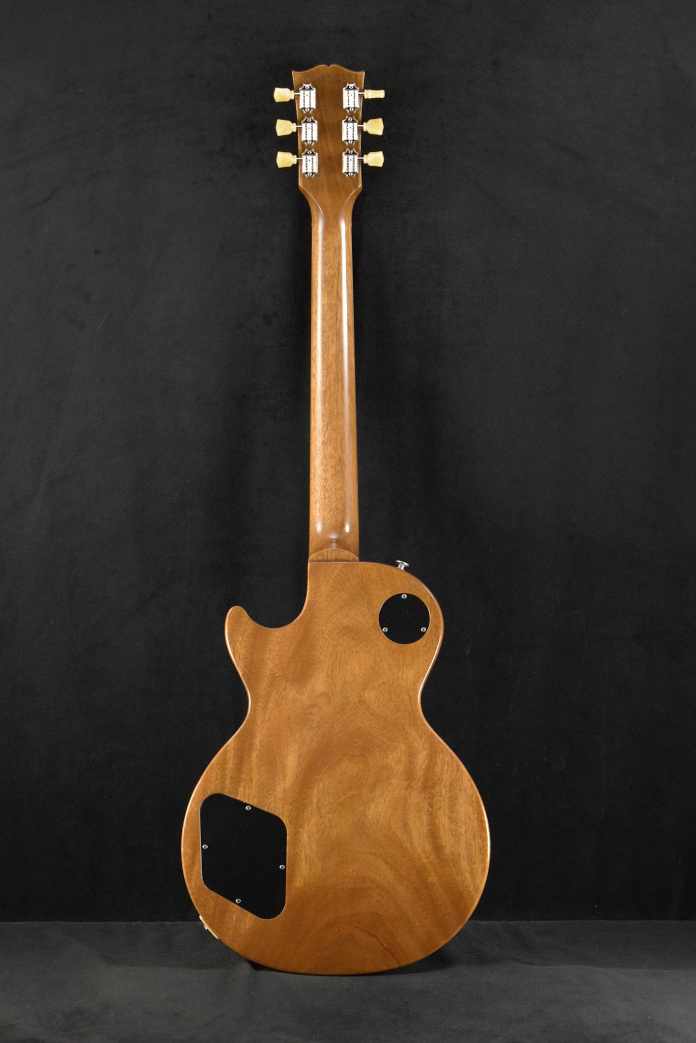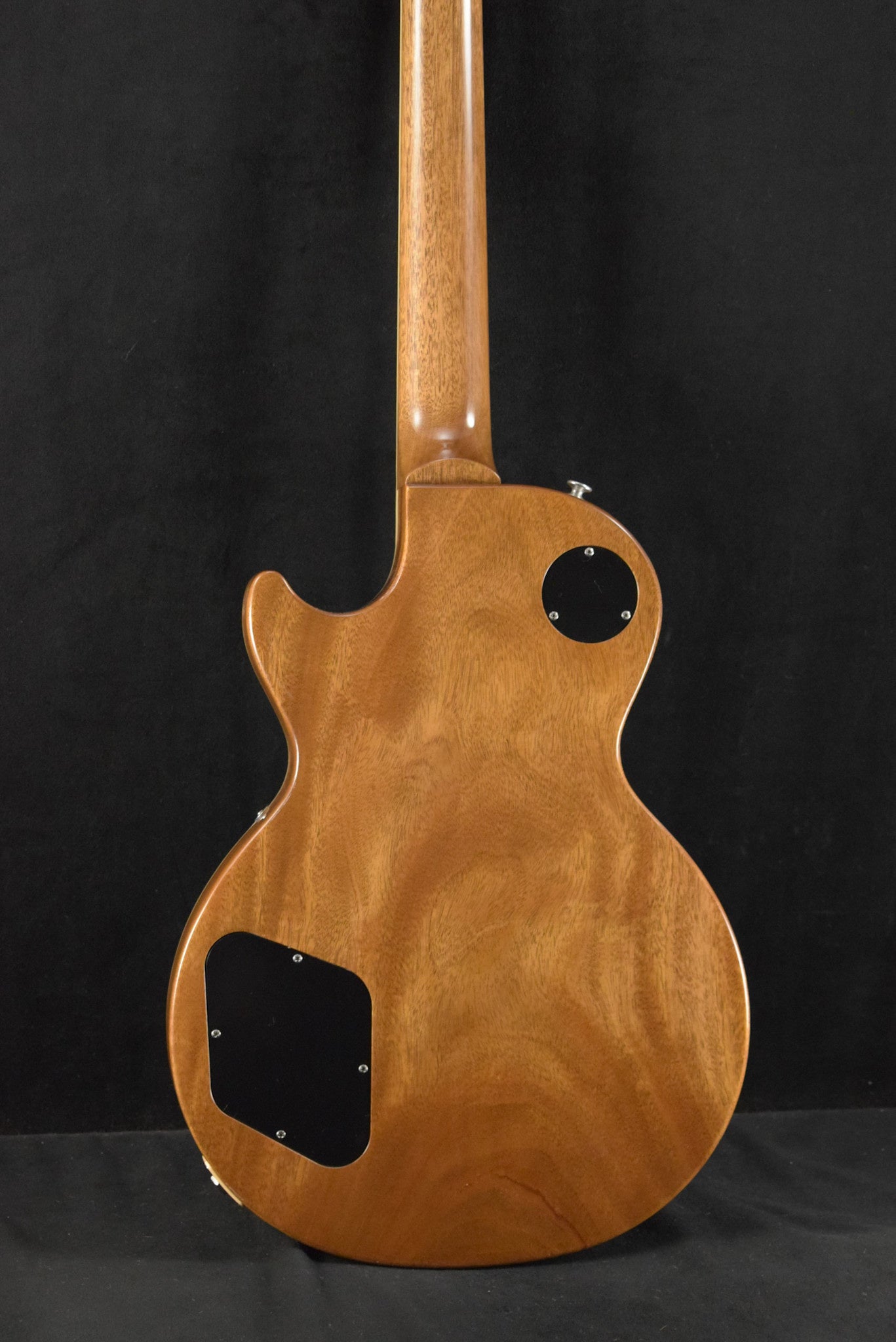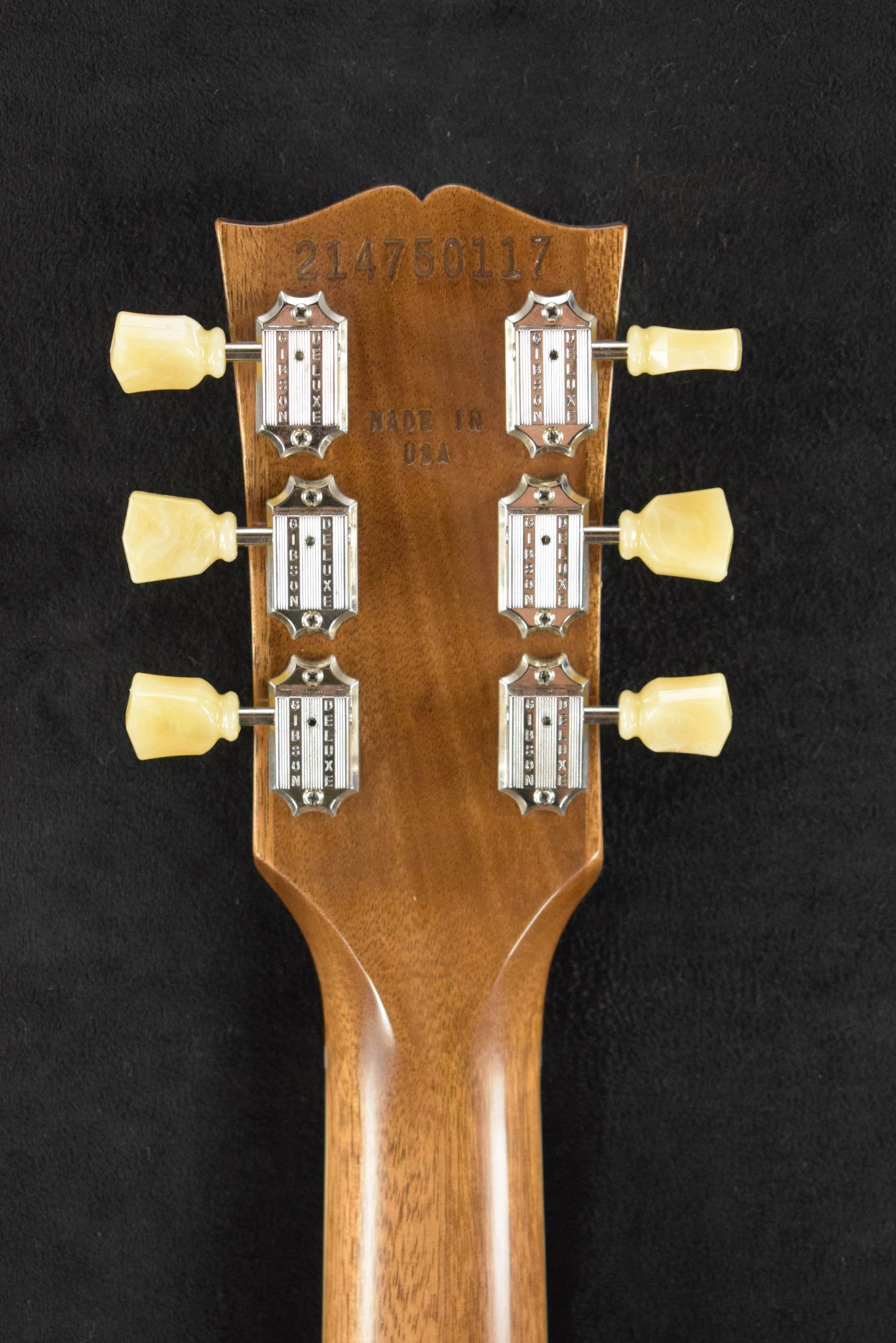 Non-weight-relieved mahogany body with carved maple cap, mahogany neck with 50s Vintage profile, Indian rosewood fretboard with trapezoid inlays and 22 medium jumbo frets, uncovered Burstbucker 1 and Burstbucker 2 pickups with Alnico 2 magnets and Double Classic White bobbins, Gibson hardshell case