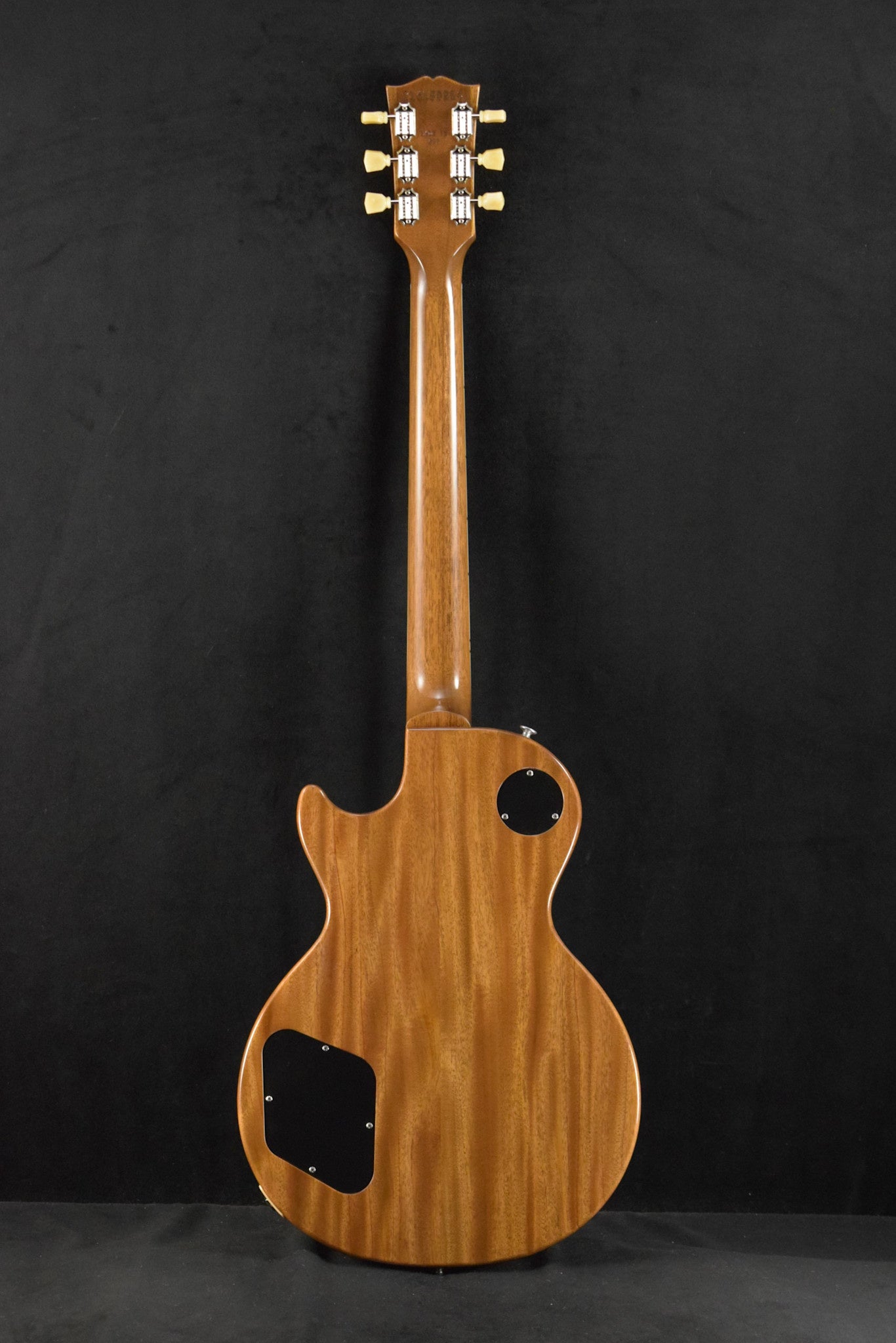 Non-weight-relieved mahogany body with carved maple cap, mahogany neck with 50s Vintage profile, Indian rosewood fretboard with trapezoid inlays and 22 medium jumbo frets, uncovered Burstbucker 1 and Burstbucker 2 pickups with Alnico 2 magnets and Double Classic White bobbins, Gibson hardshell case