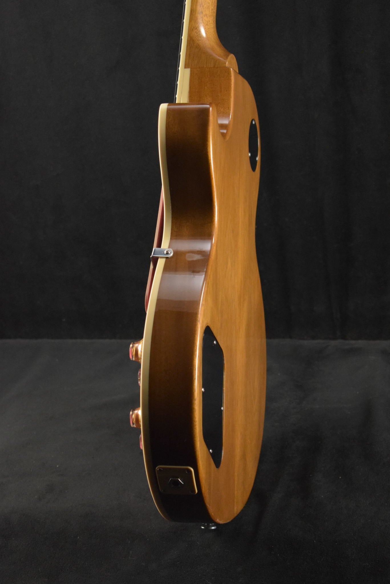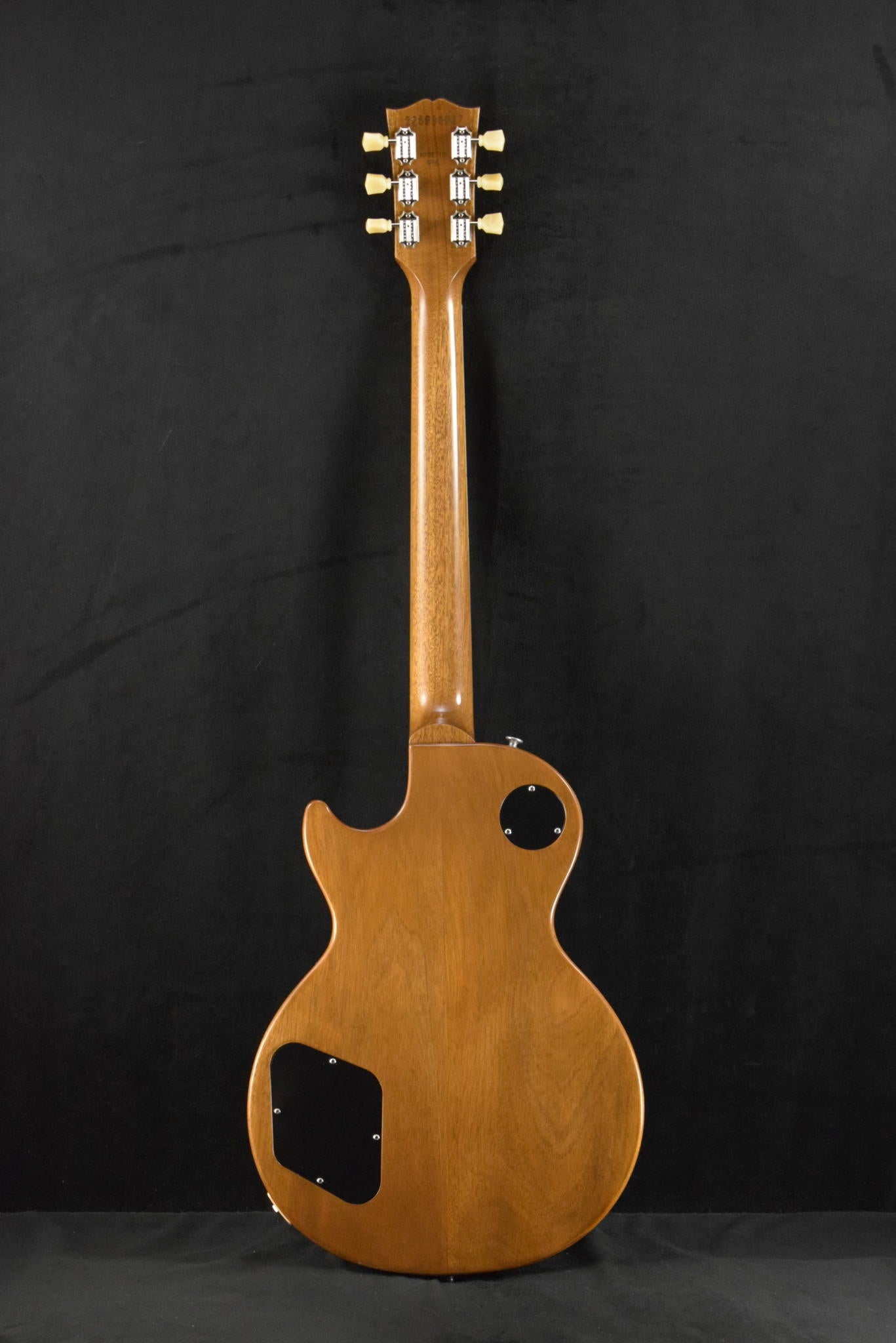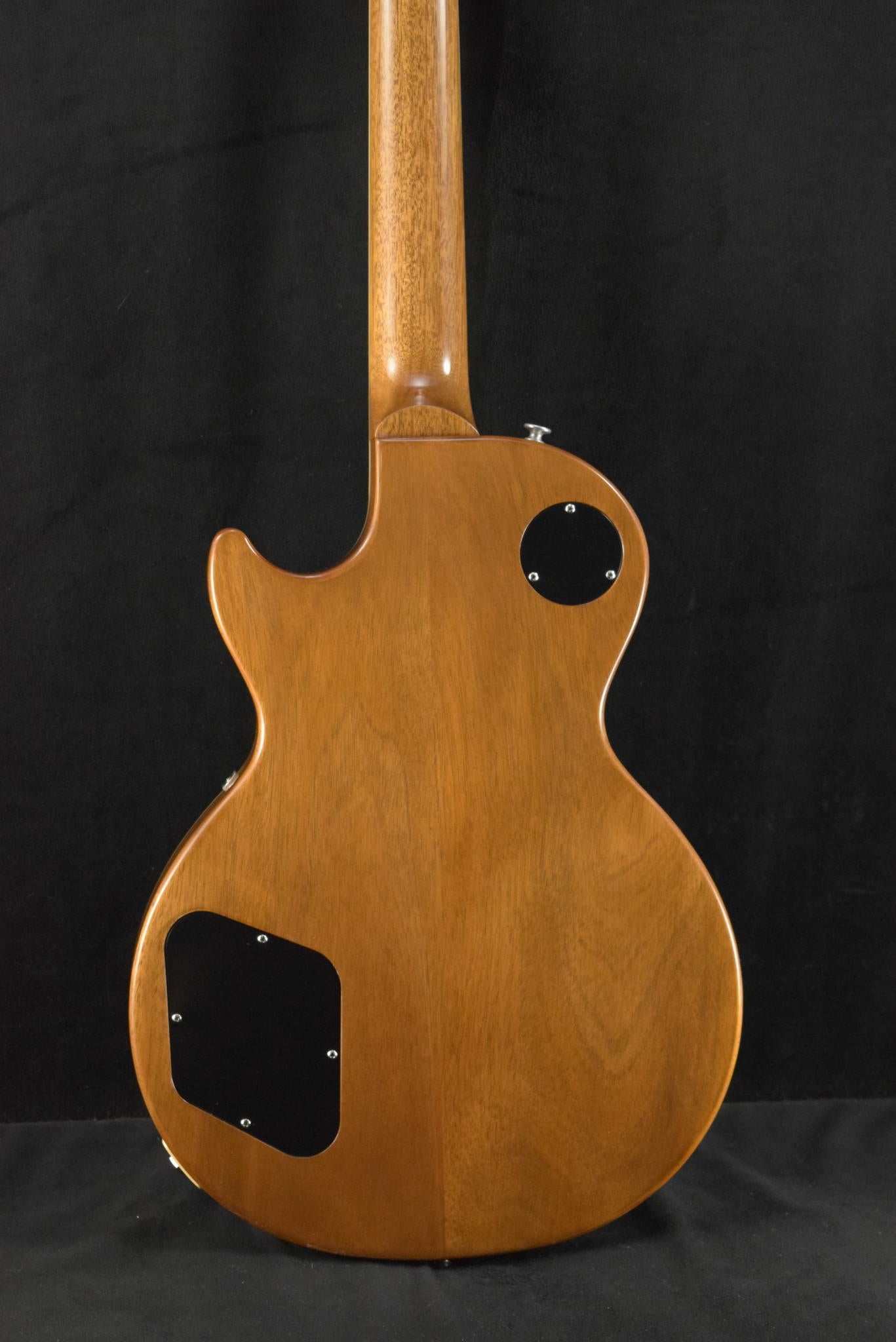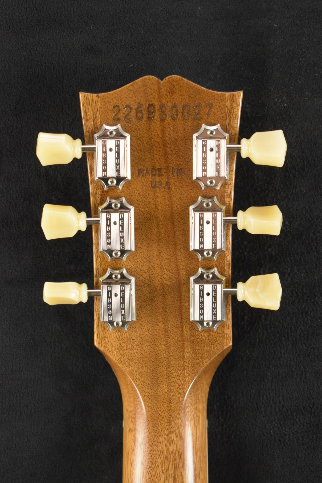 Non-weight-relieved mahogany body with carved maple cap, mahogany neck with 50s Vintage profile, Indian rosewood fretboard with trapezoid inlays and 22 medium jumbo frets, Burstbucker 1 and Burstbucker 2 pickups with Alnico 2 magnets, Gibson hardshell case