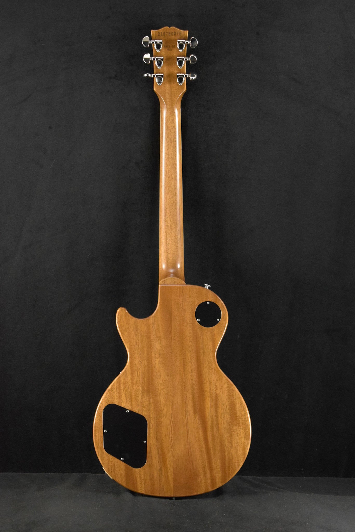 Non-weight-relieved mahogany body with carved maple cap, mahogany neck with SlimTaper profile, Indian rosewood fretboard with trapezoid inlays and 22 medium jumbo frets, uncovered Burstbucker 61R and Burstbucker 61T pickups with Alnico 5 magnets and Double Classic White bobbins, Gibson hardshell case