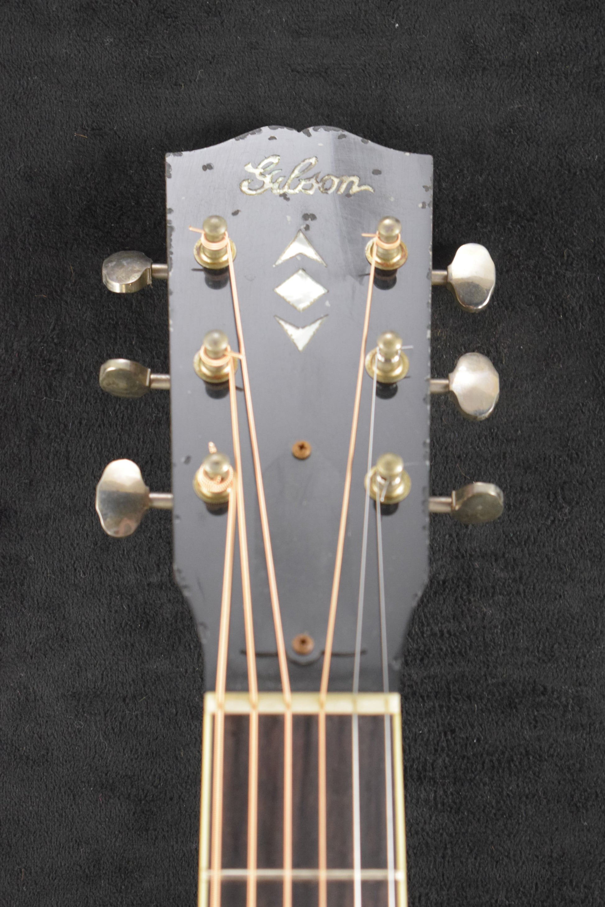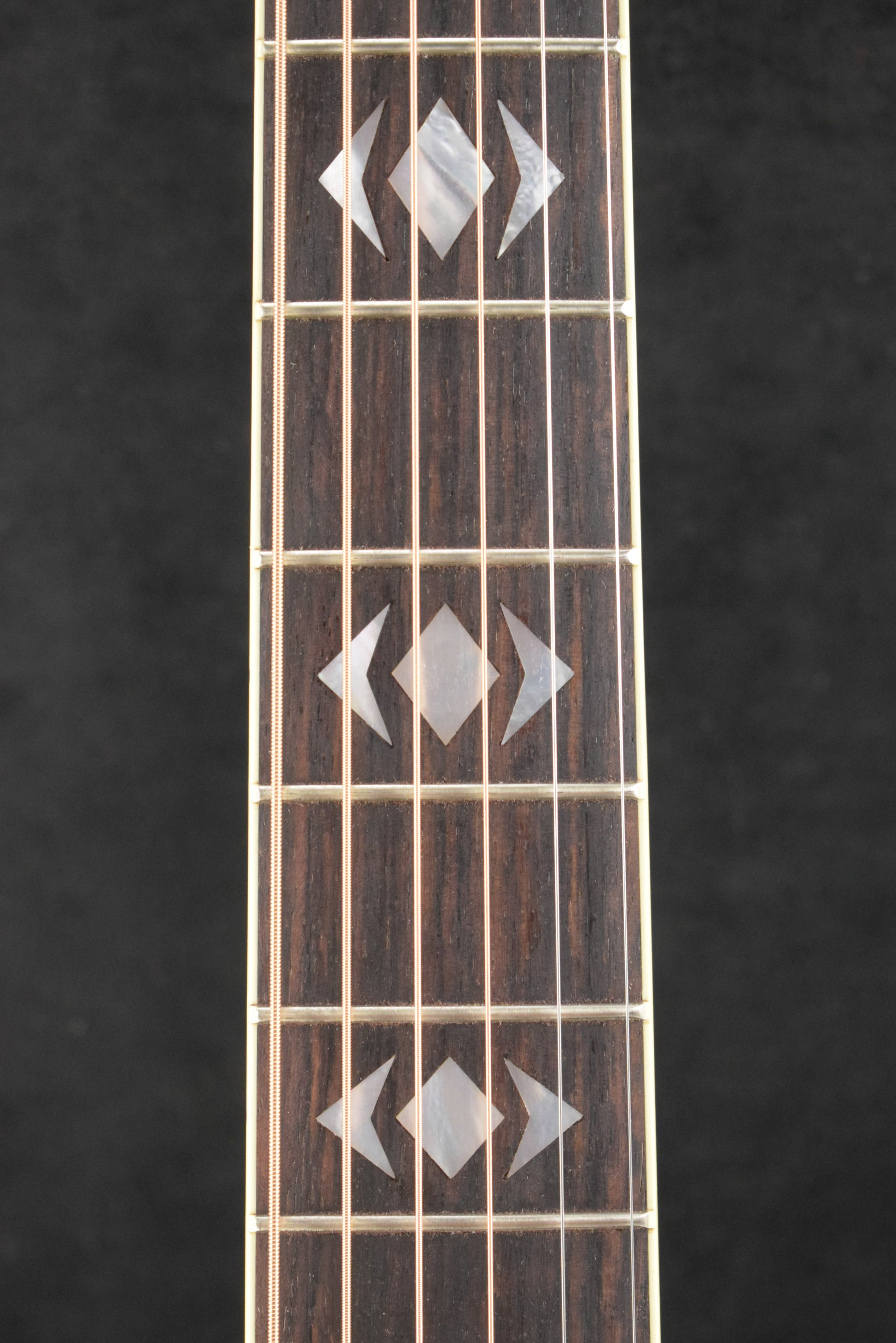 During a time when cultural optimism was low, Gibson dreamed up a new line of “advanced” instruments; included in those models was the Advanced Jumbo. Due to low production numbers from 1936-1939, this model largely flew under the radar even though it was a supreme-sounding and performing instrument. Gibson Custom is pleased to once again offer the Gibson 1936 Advanced Jumbo, outfitted with a thermally aged red spruce top and hide glue-fitted hand-scalloped X-bracing that help to give it the tone of a long-treasured musical companion, solid rosewood back and sides, and a mahogany neck with a 25.5” (647.7 mm) scale length, vintage Advanced Jumbo profile, a rosewood fretboard with a 12” fretboard radius, 19 standard frets, and mother-of-pearl diamonds and arrows inlays. The bridge is the original open slot rectangular style, and the firestripe pickguard features the original Advanced Jumbo shape. The nut, saddle, and bridge pins are all bone, and the tuning machines are premium Waverly tuners. The 1936 Advanced Jumbo Heavy Aged brings back all the tone and prestige that made these such sought-after instruments by artists and collectors. It features Heavy Aging by the skilled artisans of the Murphy Lab. The Murphy Lab Heavy Aged finish treatment, paired with heavily aged nickel hardware, simulates decades of heavy play wear, giving it the unique character, vibe, and feel of an original example from the Gibson Golden Era. Expect a heavy weather-checked finish, heavy belt buckle wear, light arm wear, and light neck wear. Here’s your chance to own one of Gibson’s most coveted vintage acoustic guitar models, with all the tone, vibe, playability, and appearance of a vintage original without the vintage price tag and potential issues that can accompany an eighty-year-old guitar. A period-correct hardshell case from Gibson Custom is included, along with a certificate of authenticity.