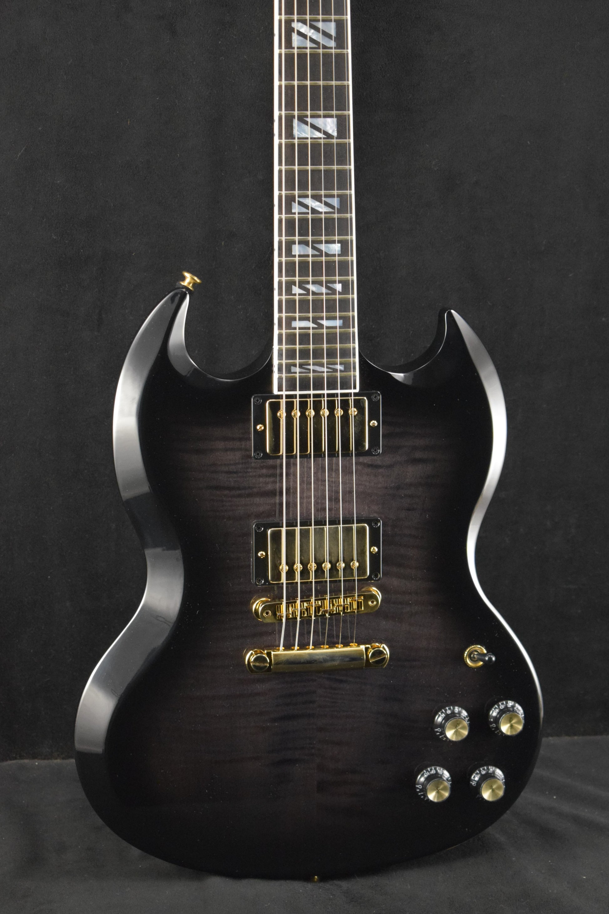 Gibson is excited to announce the return of the SG™ Supreme. With a refreshed feature set, it is bound to overshadow everything else in sight and be one of the most exciting new releases of the year. It features a beautiful AAA-figured maple top on a mahogany body. The mahogany neck has an ebony fretboard with a compound radius, 24 medium jumbo frets, and Super Split Block mother-of-pearl inlays. The headstock is adorned with a striking new mother-of-pearl "Chandelier Inlay" inspired by a design from the 1940s that was discovered in the Gibson archives. The Burstbucker™ Pro and Burstbucker Pro + pickups are paired with push/pull volume controls for coil tapping, along with individual tone controls. The three beautiful finishes are elegantly highlighted with gold hardware, making this not only a great-sounding and highly flexible instrument but also an exceptionally beautiful-looking modern rock machine. A hardshell case is also included.