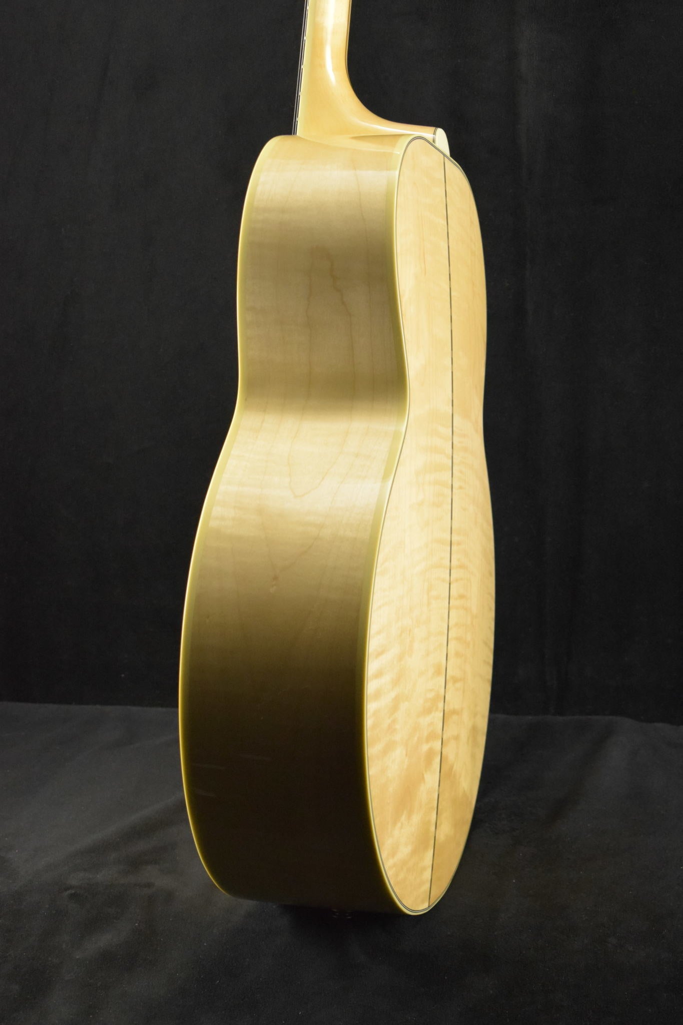 The Gibson SJ-200 is the world's most famous acoustic guitar and earned its designation as the "King of the Flat-Tops." Since its release in 1937, its wide use by American artists of this century has made the Super Jumbo one of the most widely played acoustic guitars of our time. The most striking features of the new SJ-200 Original include the carved four bar Moustache bridge, an engraved tortoise pickguard, mother-of-pearl crown fretboard and headstock inlay, and exquisite flamed maple back and sides. The SJ-200 is an American original with its shape and elegant appearance.