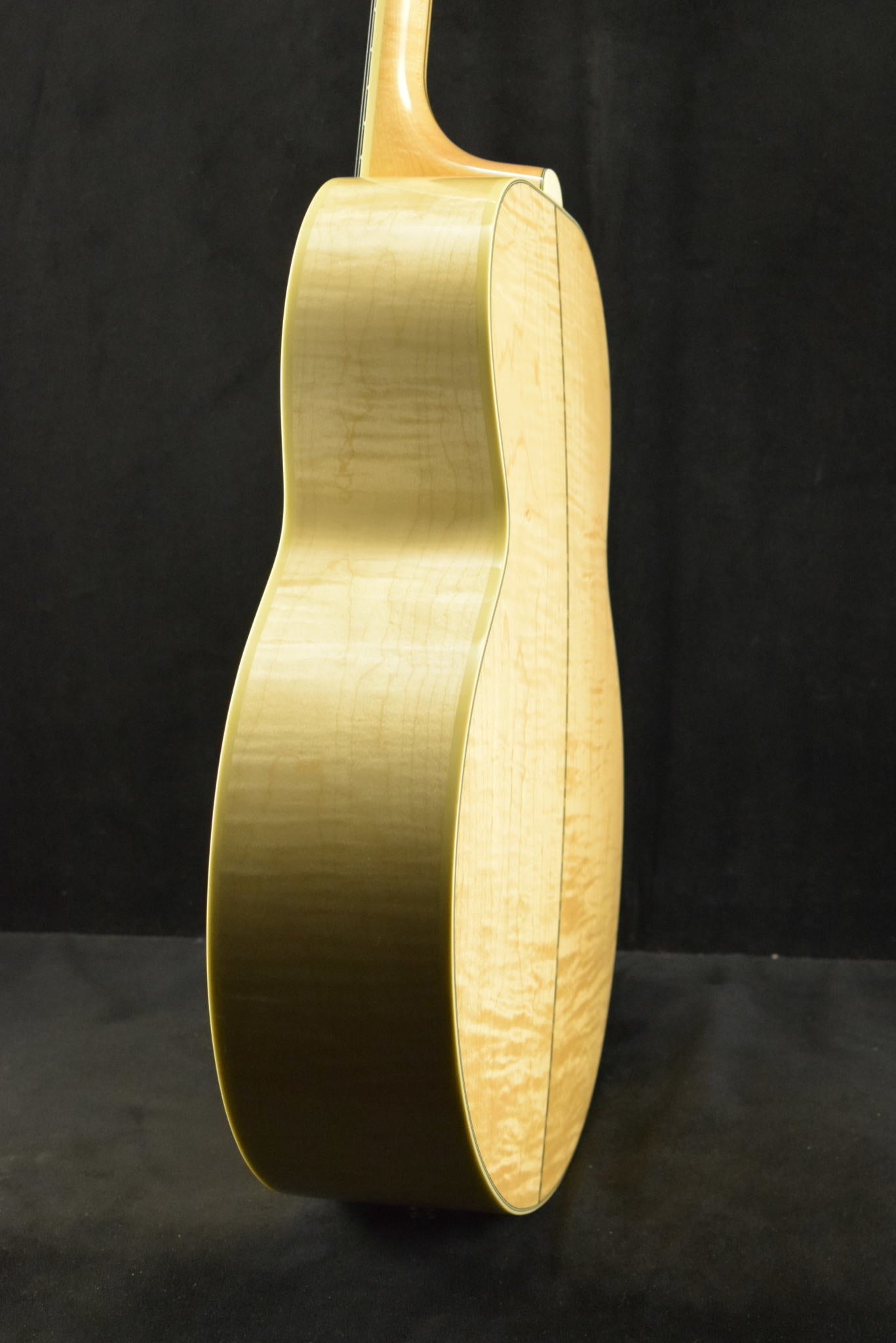 The Gibson SJ-200 is the world's most famous acoustic guitar and earned its designation as the "King of the Flat-Tops." Since its release in 1937, its wide use by American artists of this century has made the Super Jumbo one of the most widely played acoustic guitars of our time. The most striking features of the new SJ-200 Original include the carved four bar Moustache bridge, an engraved tortoise pickguard, mother-of-pearl crown fretboard and headstock inlay, and exquisite flamed maple back and sides. The SJ-200 is an American original with its shape and elegant appearance.