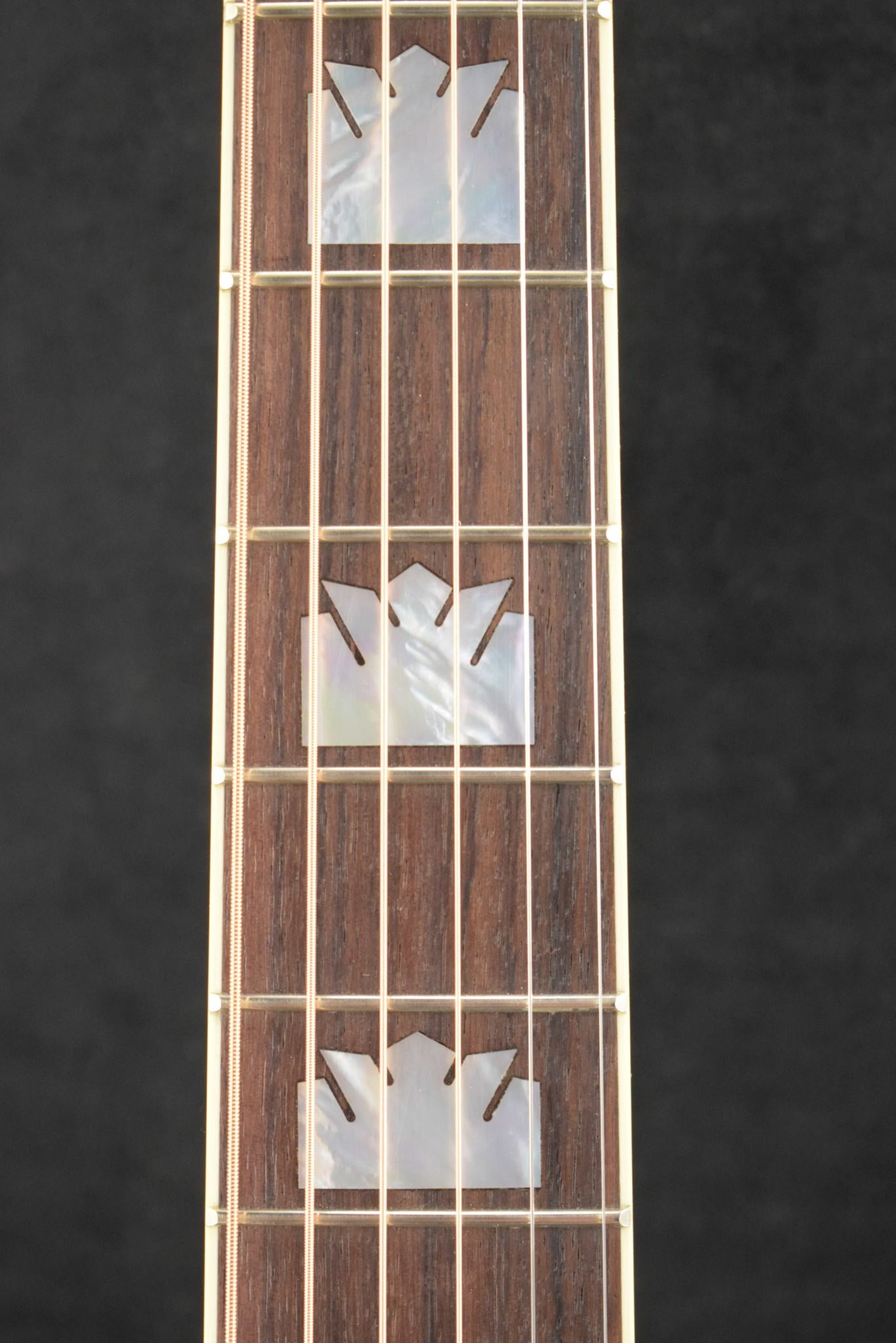 The Gibson SJ-200 is the world's most famous acoustic guitar and earned its designation as the "King of the Flat-Tops." Since its release in 1937, its wide use by American artists of this century has made the Super Jumbo one of the most widely played acoustic guitars of our time. The most striking features of the new SJ-200 Original include the carved four bar Moustache bridge, an engraved tortoise pickguard, mother-of-pearl crown fretboard and headstock inlay, and exquisite flamed maple back and sides. The SJ-200 is an American original with its shape and elegant appearance.