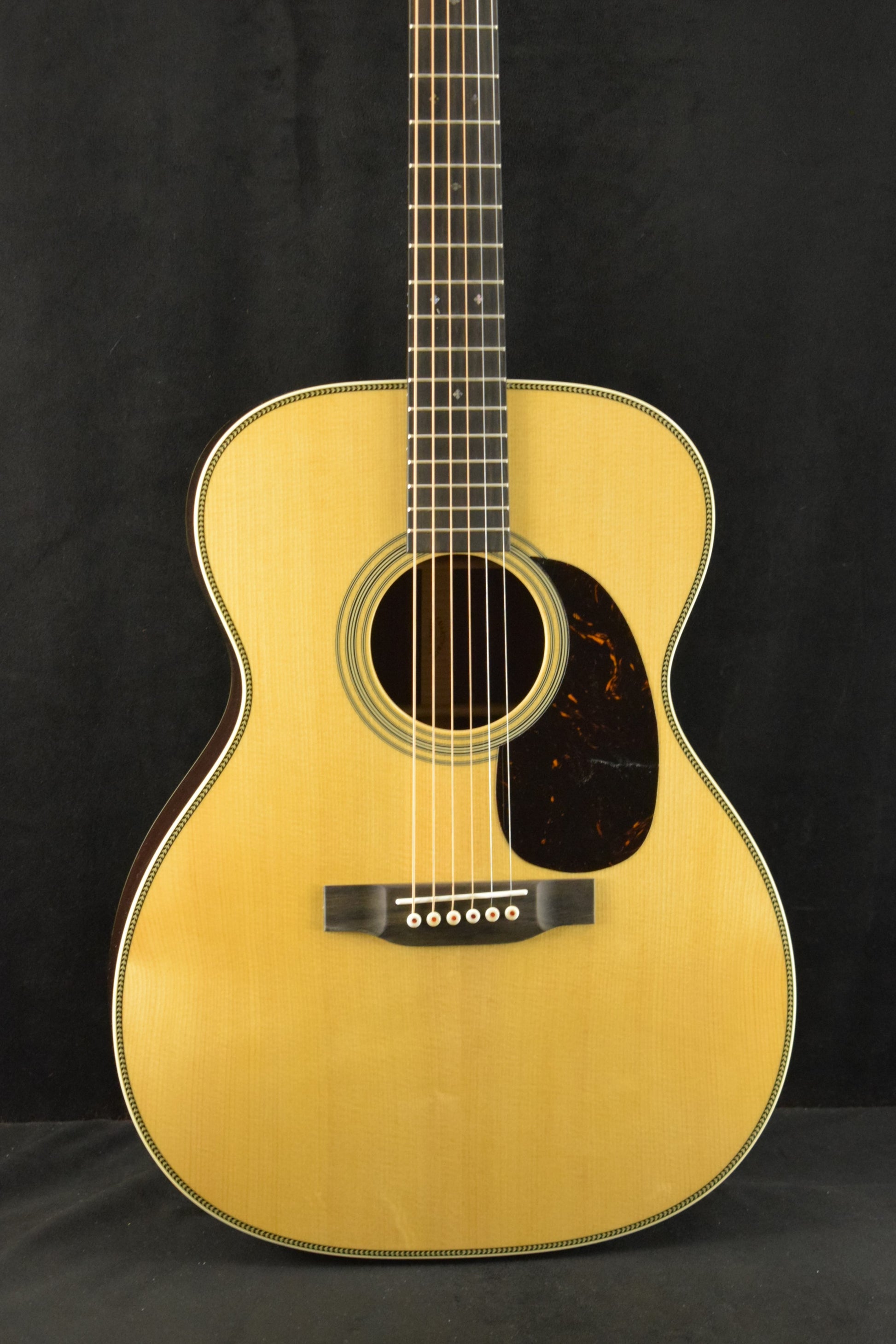 The Martin 000-28 is one of the most iconic models in Martin’s lineup, trusted by generations of players for its versatility, tone, and timeless craftsmanship. Its Auditorium body size delivers a beautifully balanced voice across all six strings, making it equally suited for fingerstyle finesse or bold strumming. Handcrafted with a solid spruce top and solid East Indian rosewood back and sides, the 000-28 offers deep bass, rich overtones, and exceptional resonance, perfectly balanced for any playing style. The satin neck with a Golden Era (GE) Modified Low Oval profile, high-performance taper, and 24.9" scale length ensures unmatched comfort and effortless playability. Elegant details, like bold herringbone top inlay, antique white binding, an ebony bridge with bone pins, and an ebony fingerboard adorned with abalone diamond and square inlays, enhance its timeless design. Available in a variety of stunning gloss options, the 000-28 is a guitar you can trust to unleash the artist within.
