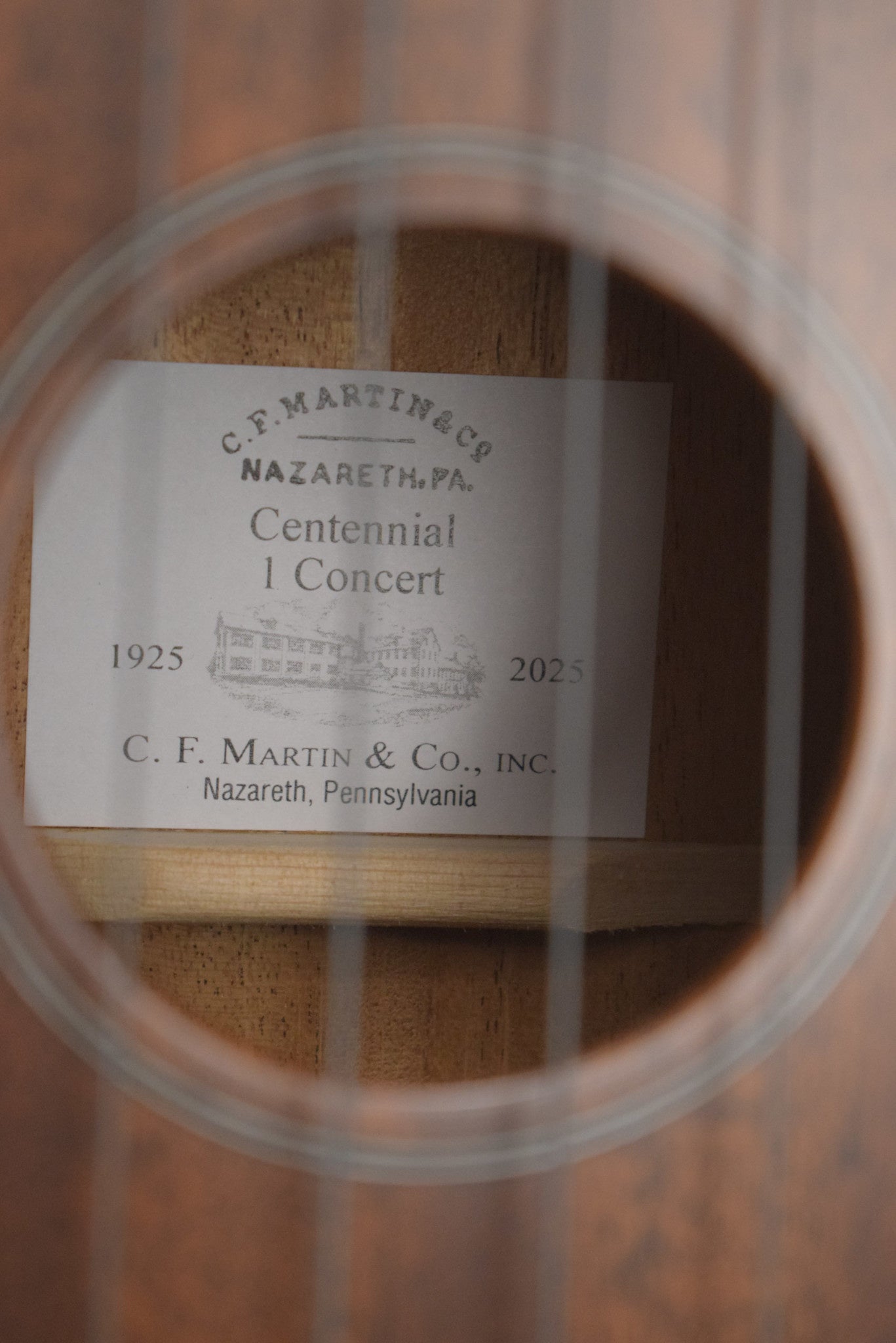 Celebrate a major milestone of Martin craftsmanship with the limited-edition Centennial 1 Concert Uke. This understated yet elegant ukulele honors 100 years of Martin producing concert-sized ukes, which have been cherished by players worldwide since 1925. Crafted from solid sinker mahogany, reclaimed from the depths of Belizean rivers, this uke has a rich, warm tone and a striking grain that only nature could create. Its concert size offers a coveted balance, sitting between the smaller soprano and larger tenor, making it comfortable to play while delivering full, resonant sounds. The neck is also made from sinker mahogany paired with an East Indian rosewood fingerboard that stops at the body joint, a nod to vintage ukulele design that opens up more of the instrument’s top for increased resonance. Enhanced with a satin finish, Madagascar rosewood binding, and Waverly nickel tuners for precision and stability, this ukulele brings modern upgrades while staying true to classic Martin style. With only 91 examples available, this vintage-inspired uke is a rare find for players and collectors alike. It even includes a commemorative paper label inside to mark this special milestone, featuring an image of the North Street factory where the first concert ukes were handcrafted 100 years ago.