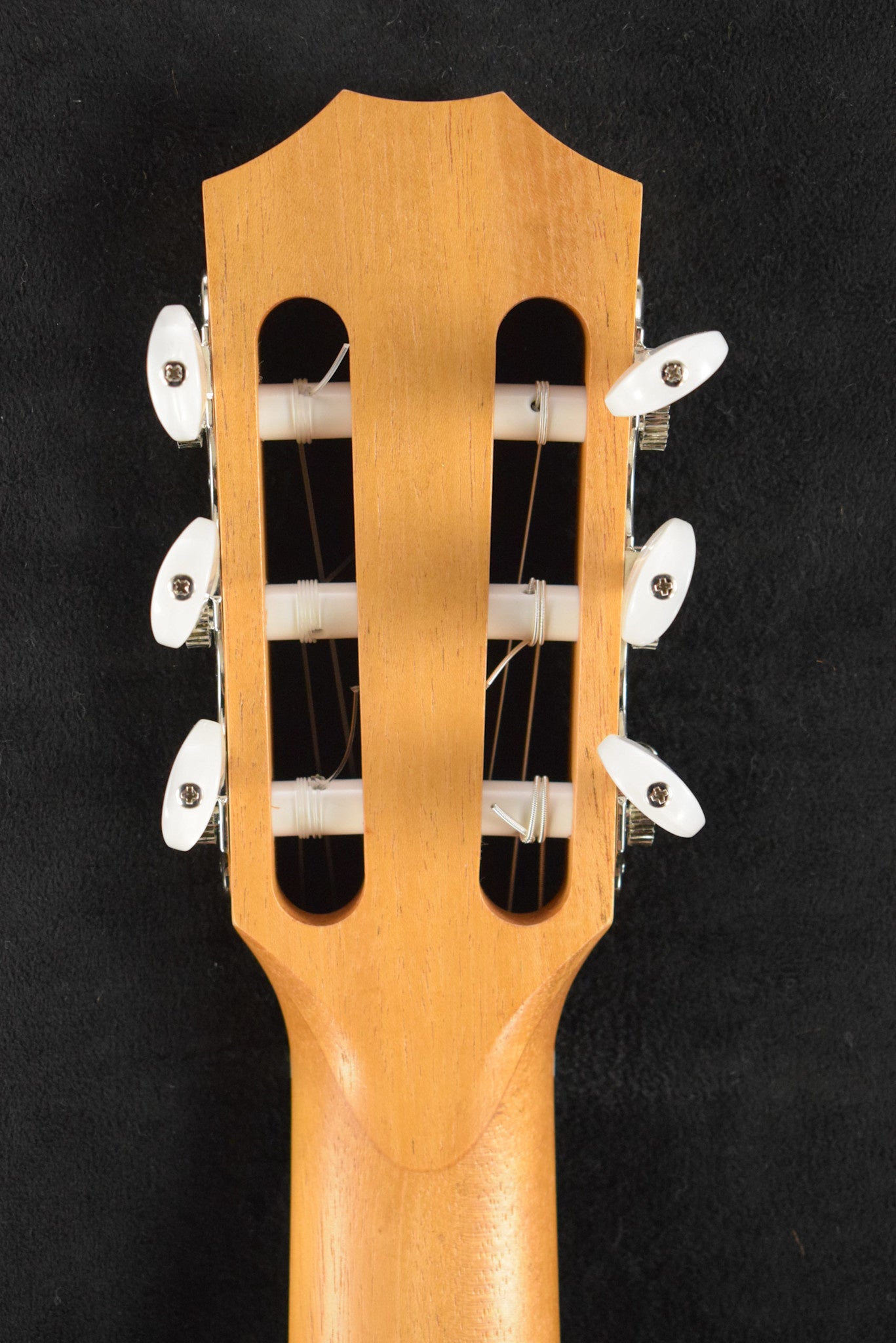 This acoustic/electric nylon-string Grand Concert from our Academy Series may be the best nylon-string guitar you’ll find for the money. The underlying design goal of the series is to make the acoustic guitar accessible to more players by bringing Taylor’s legendary playability and tone into an affordable price range. One of the benefits of a nylon-string guitar is that the light string tension is easy on the fingertips. Another inviting feature is a built-in armrest to enhance the playing comfort. Tonally, the wood pairing of layered sapele back and sides with a solid Lutz spruce top, together with the body’s internal bracing, project a warm, mellow nylon voice with crisp percussive appeal that suits a variety of musical styles and responds well to both fingerpicking and flatpicking. The onboard ES-N pickup and preamp captures that nylon character and give you additional tone-shaping control. Whether you’re a steel-string player looking to add an affordable nylon-string to your acoustic toolbox or crave a great-sounding acoustic guitar that’s easy on the hands and the wallet, the A12e-N is an option well worth exploring.
