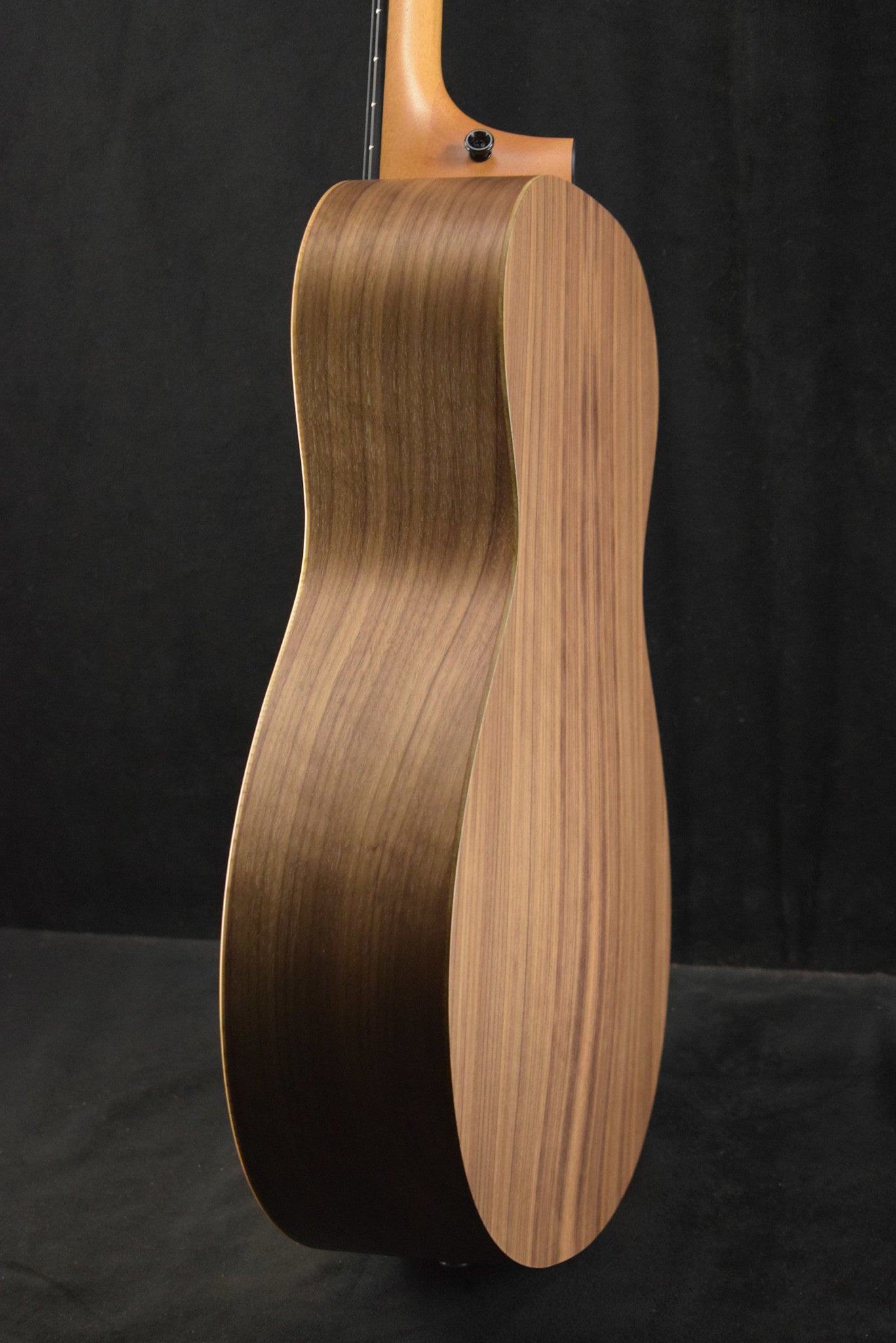 Non-cutaway - The clean, symmetrical look of a traditional acoustic guitar.