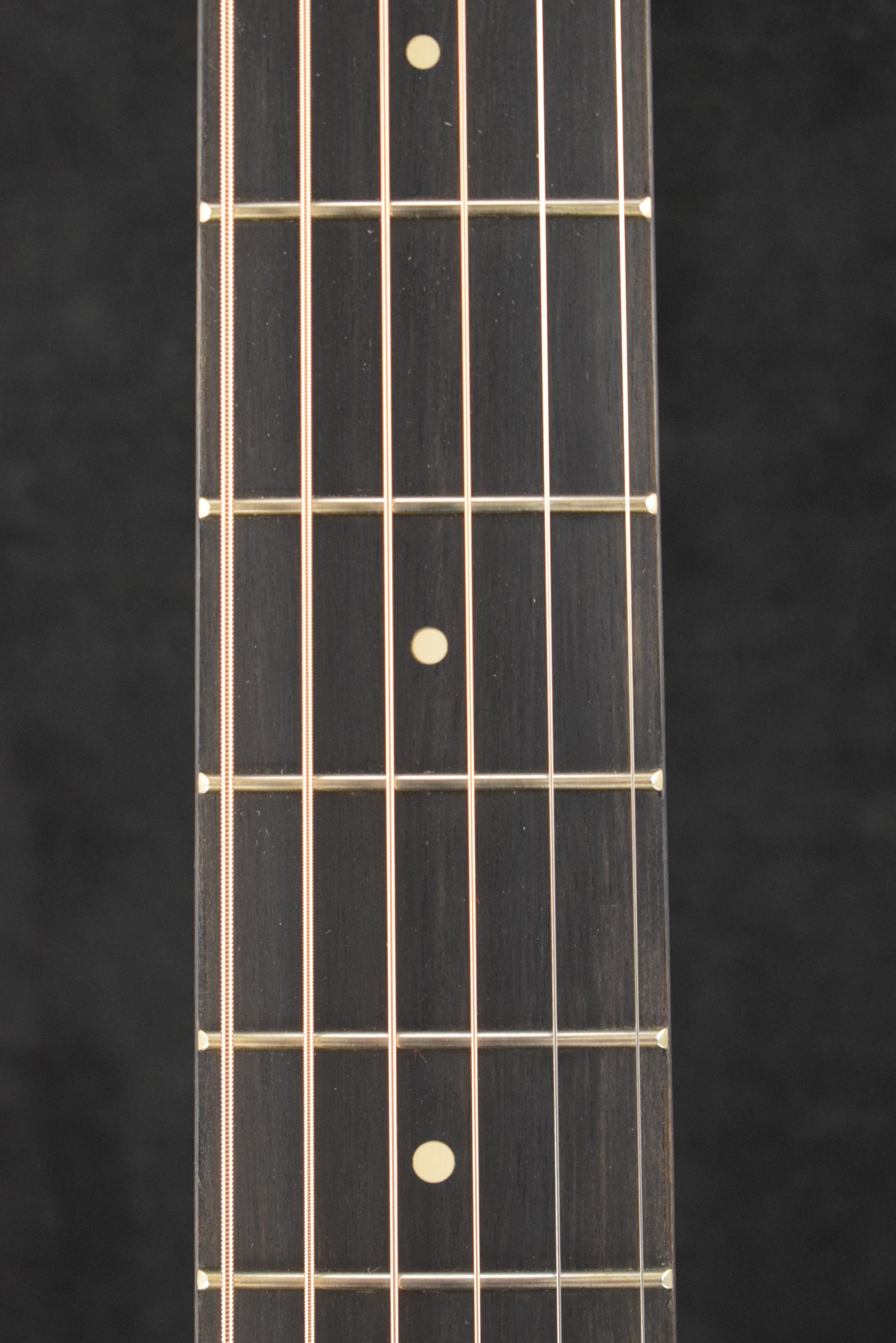 Visual appointments reflect the guitar's old-school sound, including a firestripe pickguard, a Curve Wing bridge in Honduran rosewood with Indian rosewood bridge pins, and cream-colored binding, rosette and Crest inlays. This model ships with LR Baggs Element VTC electronics for warm, clear plugged-in sound and a deluxe hardshell case with a British Cocoa exterior.