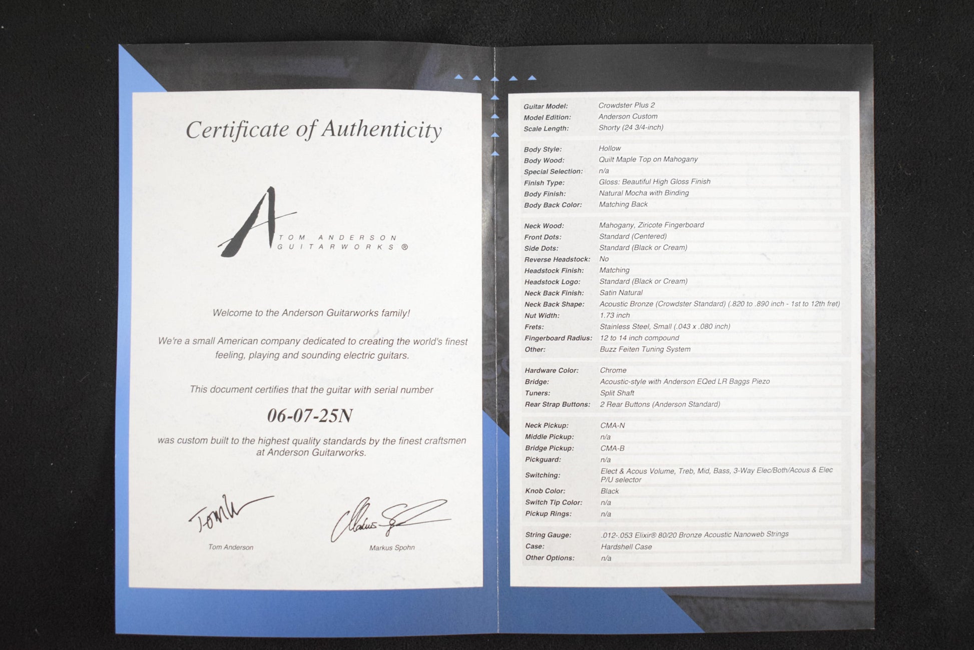Tom Anderson Crowdster Plus 2 Natural Mocha with Binding