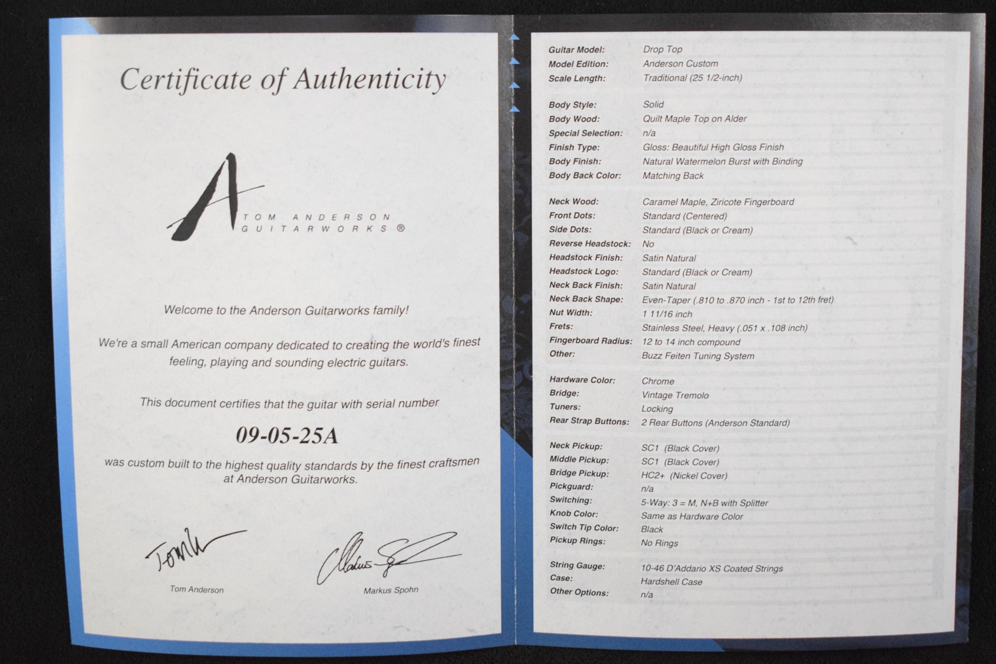 Tom Anderson Drop Top Natural Watermelon Burst with Binding