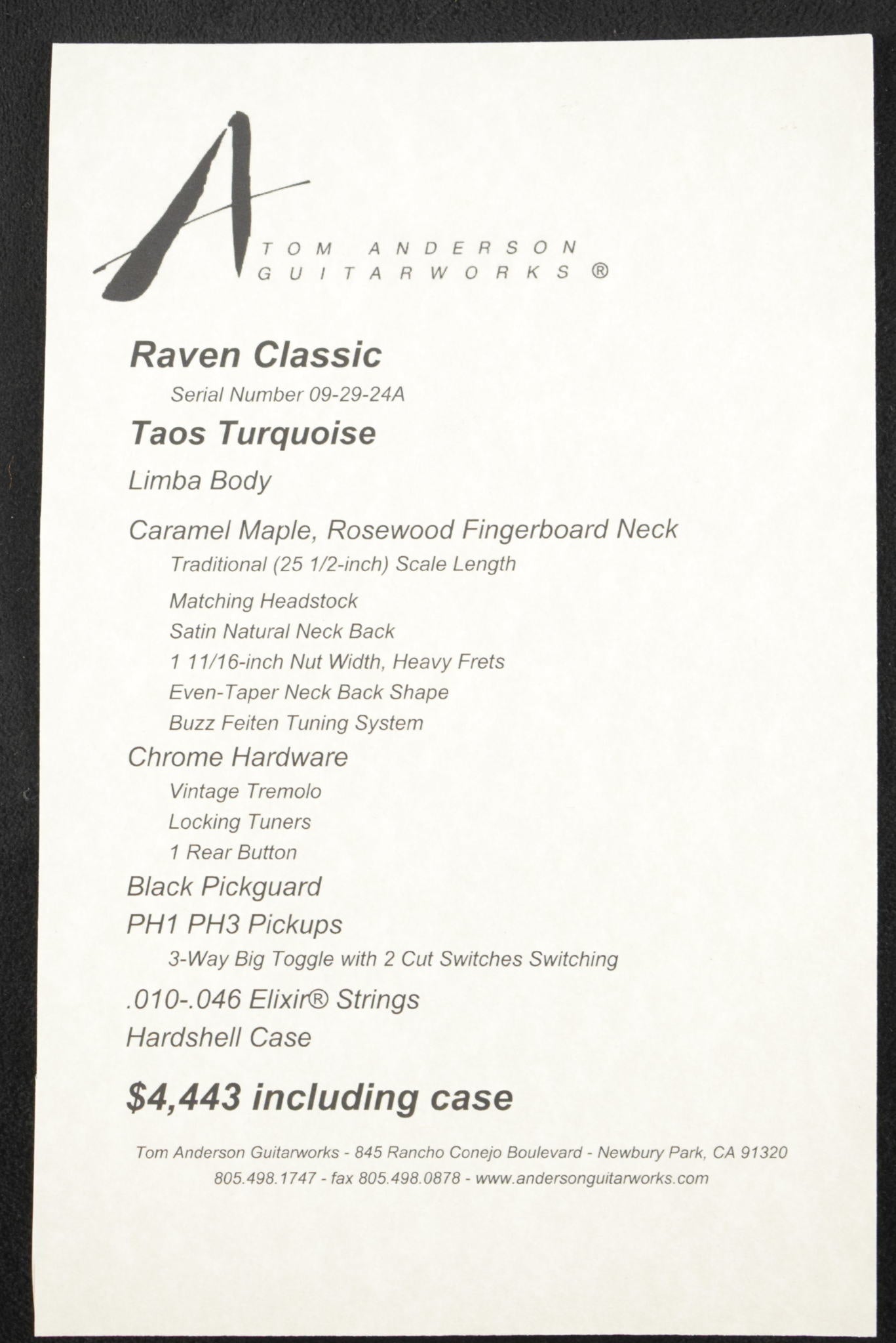 Tom Anderson Raven Classic Taos Turquoise